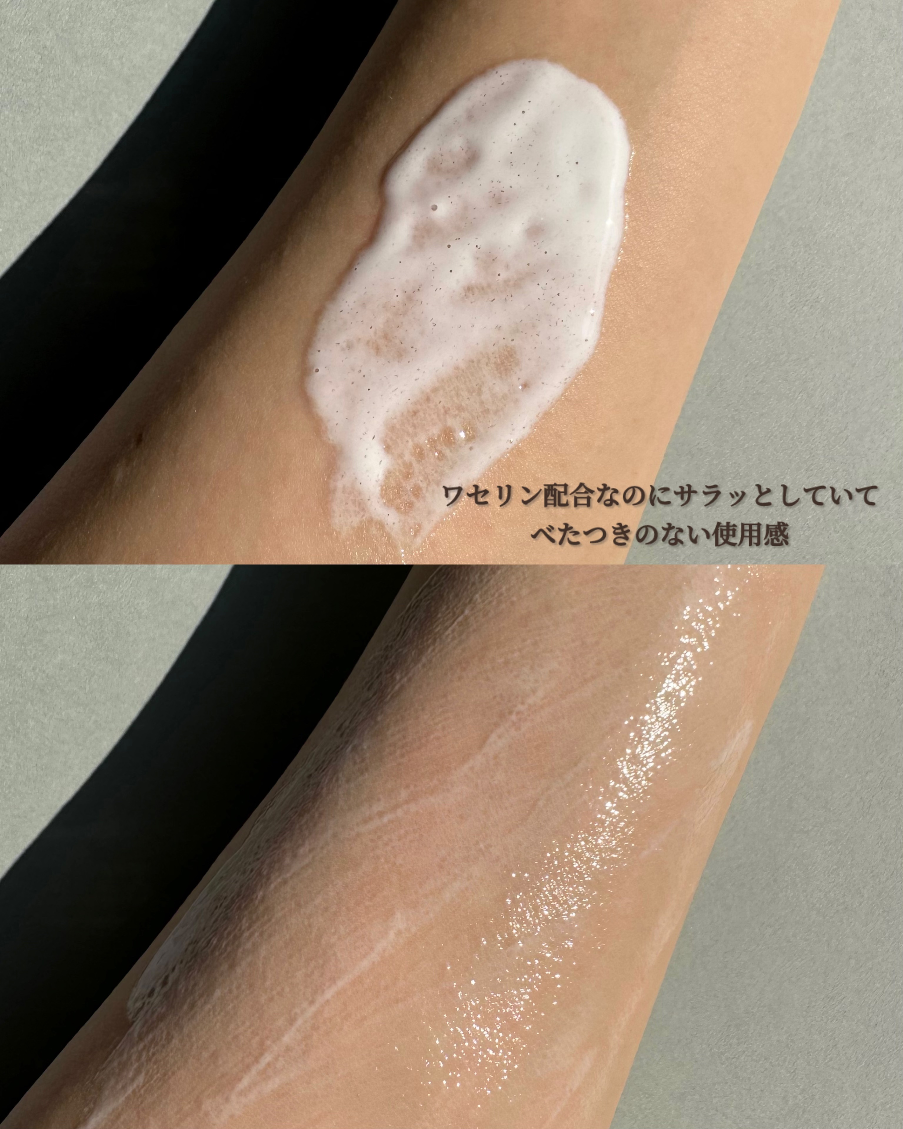 - <本体(130ml)> 水、ワセリン、グリセリン、トリ(カプリル酸/カプリン酸)グリセリル、ペンチレングリコール、水添レシチン、ジヒドロキシリグノセロイルフィトスフィンゴシン、セラミド6II、セラミド1、セラミド2、セラミド3、セラミドEOS、カプロオイルスフィンゴシン、カプロオイルフィトスフィンゴシン、グリチルリチン酸2K、オリゴペプチド-24、塩化Na、塩化K、ピリドキシンHCI、セリン、BG、PEG60水添ヒマシ油、酢酸トコフェロール、パンテノール、コレステロール、ヒドロキシプロピルメチルセルロースステアロキシエーテル、ベヘン酸、ジメチコン、クロルフェネシン、セテアレス25、キサンタンガム、セタノール、ベヘニルアルコール、フェノキシエタノール <つめかえ(130ml)> 水、ワセリン、グリセリン、トリ(カプリル酸/カプリン酸)グリセリル、ペンチレングリコール、水添レシチン、ジヒドロキシリグノセロイルフィトスフィンゴシン、セラミド6II、セラミド1、セラミド2、セラミド3、セラミドEOS、カプロオイルスフィンゴシン、カプロオイルフィトスフィンゴシン、グリチルリチン酸2K、オリゴペプチド-24、塩化Na、塩化K、ピリドキシンHCI、セリン、BG、PEG60水添ヒマシ油、酢酸トコフェロール、パンテノール、コレステロール、ヒドロキシプロピルメチルセルロースステアロキシエーテル、ベヘン酸、ジメチコン、クロルフェネシン、セテアレス25、キサンタンガム、セタノール、ベヘニルアルコール、フェノキシエタノール