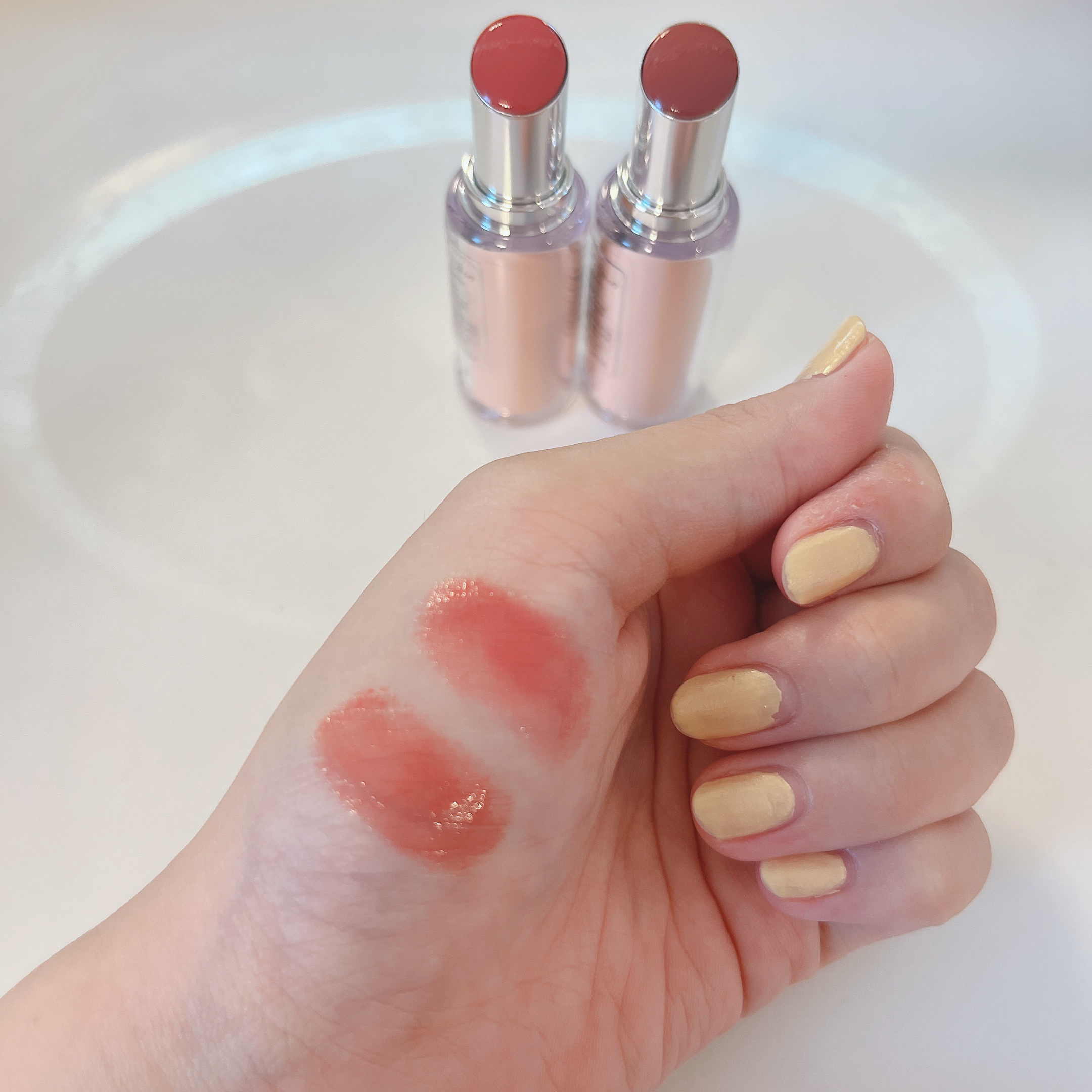 - Point1 透き通った気品が感じられるカラー ユニークなヌードカラーから自然なニュートラルカラー、深くて密度のあるポイントカラーまで、さまざまな好みに合わせた幅広いカラーバリエーション。それぞれのカラーが持つ明度や彩度に合わせて透明感を細かく調整しているため、グラデーションリップやオーバリップなど、プロが施したようなさまざまなリップメイクが楽しめます。また、夕方の暗い空間や、室内の光の下でも、唇本来の色にリップスティックのカラーが馴染み、水彩画のようなナチュラルな発色で、自然な血色感のある唇に演出します。 Point2 光に包まれたガラス玉のようなきらめき Lakaならではの「ボンディンググロウ」フォーミュラで、唇に触れた瞬間、体温でやさしく溶けていくようなテクスチャー。しっとりと馴染んで密着しながら唇をコーティングしてくれます。高い屈折率で光を強く反射させるハイシャインオイルコンプレックスを配合し、光沢感のある生き生きとしたリップカラーを実現しました。
