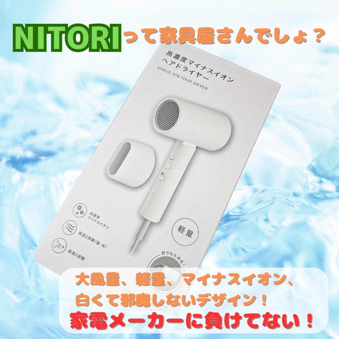 高濃度マイナスイオンヘアドライヤー 商品コード 2113400002036 ¥4,990(税込)* シンプルなデザインでお部屋の雰囲気にマッチするホワイト ロングヘアーのため軽量タイプで持ちやすく助かります