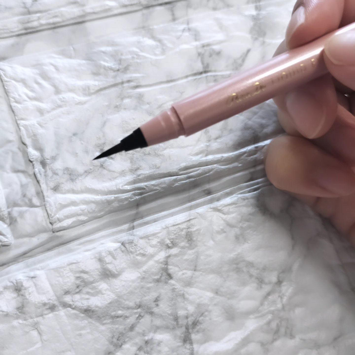 - 簡単に美しく、目尻に自分史上最高の「極細ライン」が叶うリキッドタイプのアイライナーです。 細さが100マイクロメートルで、断面が星形のセンイを60%筆に使用。溝のある星形センイのため、液含みが向上。 さらに、星形センイを混ぜることで、筆にコシが生まれて筆先がブレないため、かすれない極細ラインを実現します。 目尻のキワまですーっと「ひと筆」。すっきりと美しい「大人のまなざし」へ。