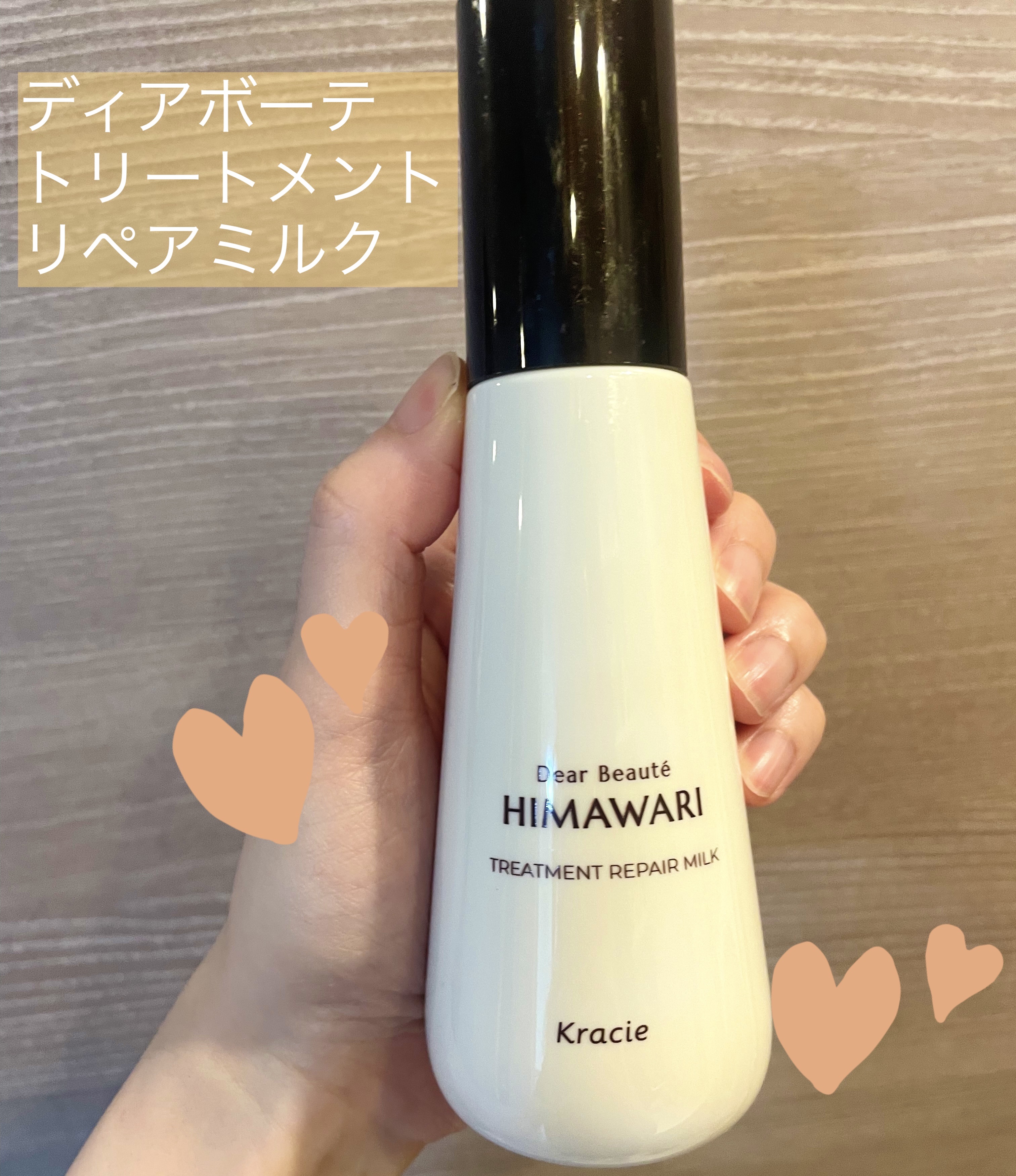 LIPSさまを通じて、ディアボーテさまからHIMAWARIディアボーテトリートメントリペアミルクを使わせていただきました。口コミが良くて気になっていたアイテムだったので、とても嬉しいです。水分&油分のバランスを整え、乾燥によるくせやうねりをケ...