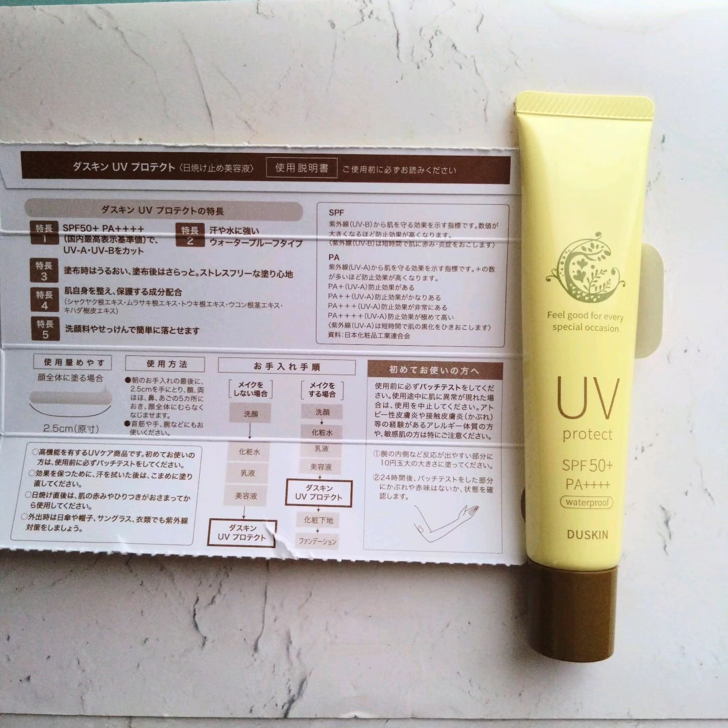 サラッとした乳液状のテクスチャ どんな肌色の方にも馴染みやすそうだと思います。 みずみずしい感触で伸びが良く、しっとりした使用感です。馴染むとサラッとした感触に変わるので、すぐにメイクできるのも嬉しい。 程良くトーンアップした明るくなめらかな仕上がりなので化粧下地としても優秀。小ジワや毛穴も若干目立たなくなる気がします。 SPF50+ PA++++ながら負担感のない軽い使用感で、花粉症で肌荒れ気味でも問題なく使えました。
