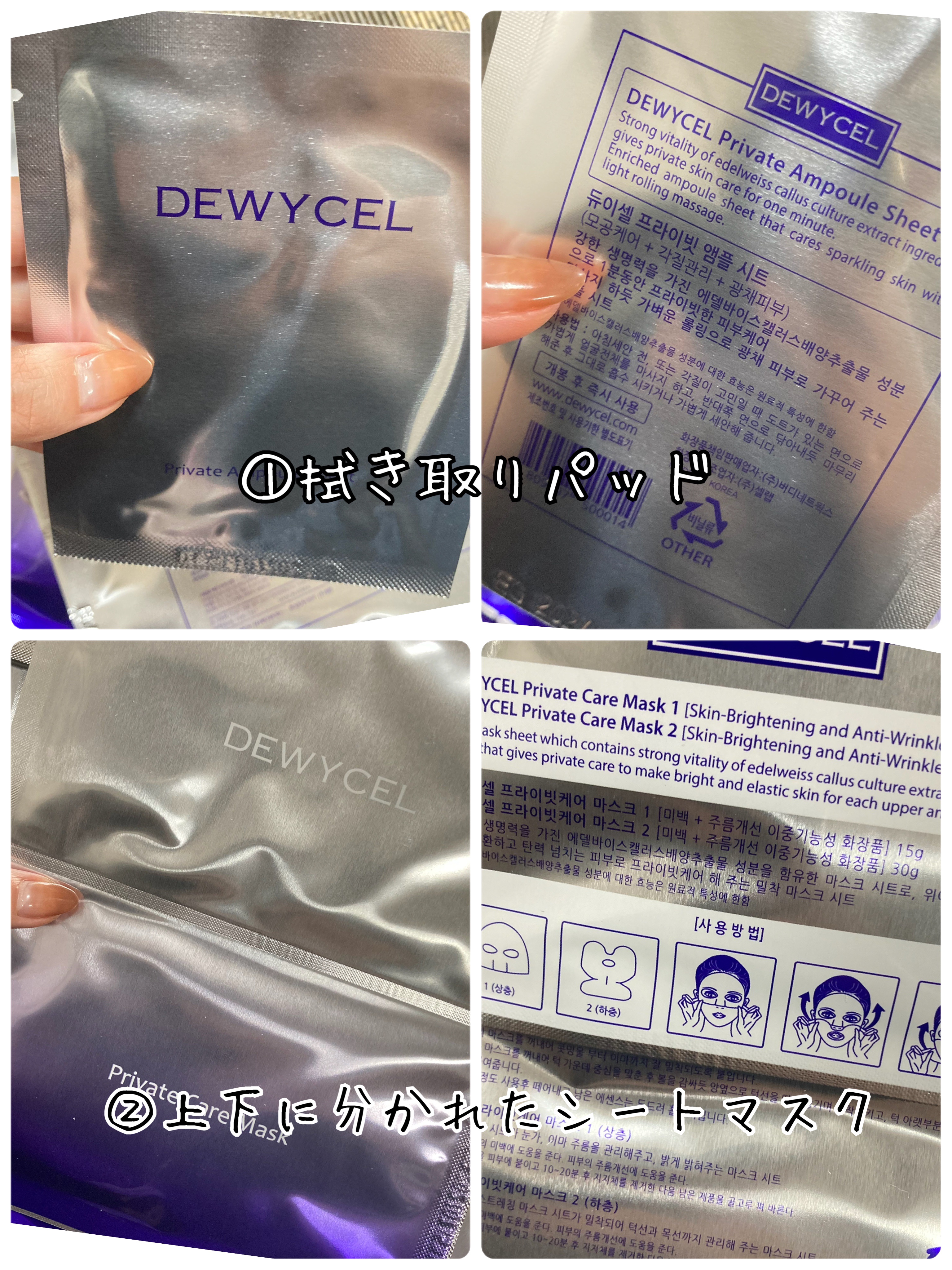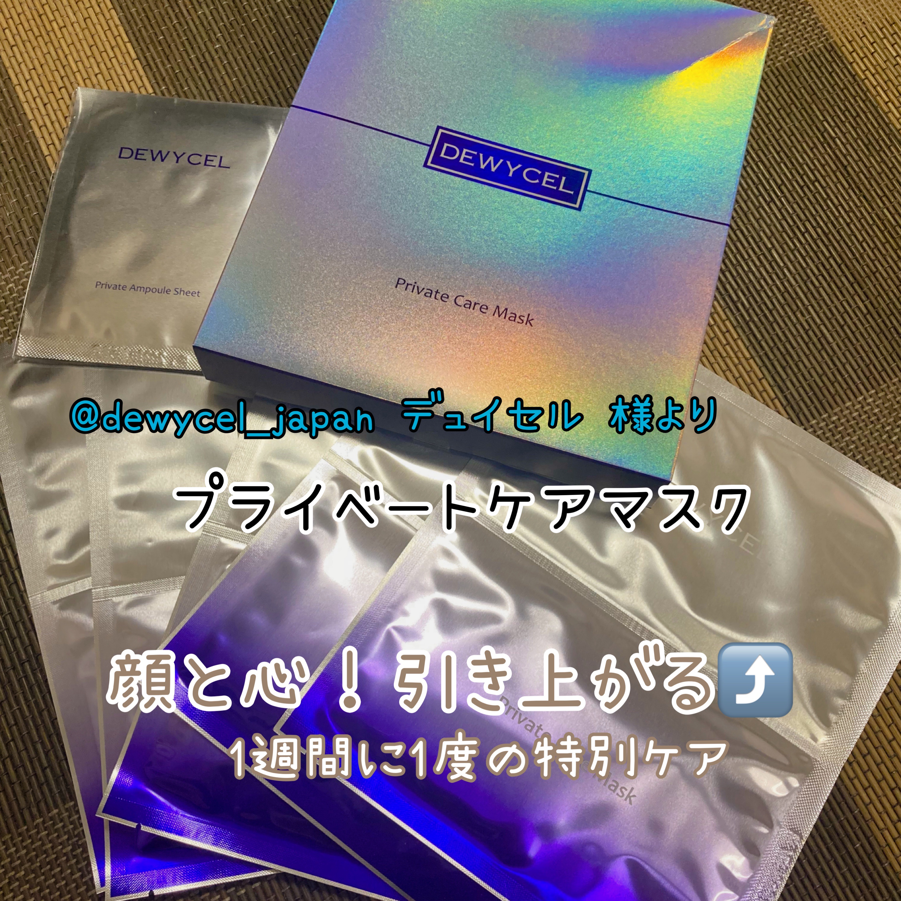 DEWYCELさまからいただきました。デュイセルプライベートケアマスク\累計販売枚数1,400万枚突破!/韓国免税店で1位、Qoo10やオリーブヤングでも1位を獲得したことのあるマスクパック。角質ケアから保湿、栄養らトーンアップ、弾力ケアまで...