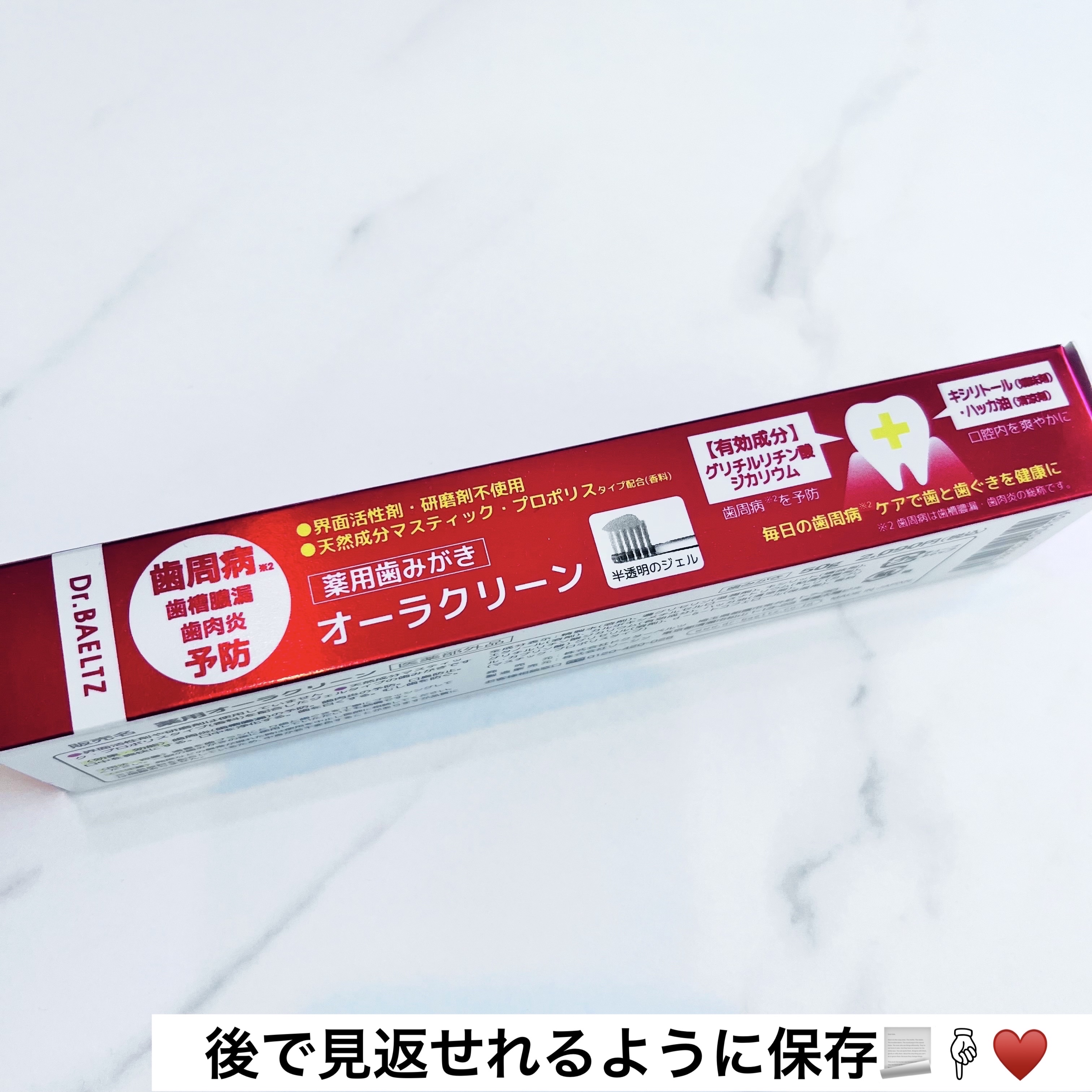 赤いパッケージが強そう!効きそう!な歯磨きジェル。ジェルだからとてもなめらかでマイルドな使い心地です。辛味はまったくないです。 マスティックは口腔内の雑菌だけを除去してくれる。口腔内環境を整え、虫歯や歯周病、口臭予防に効果を発揮します。 界面活性剤や研磨剤は使われてないのでこんなにマイルドで優しい使い心地なんですね!仕上げのデンタルリンスにも。