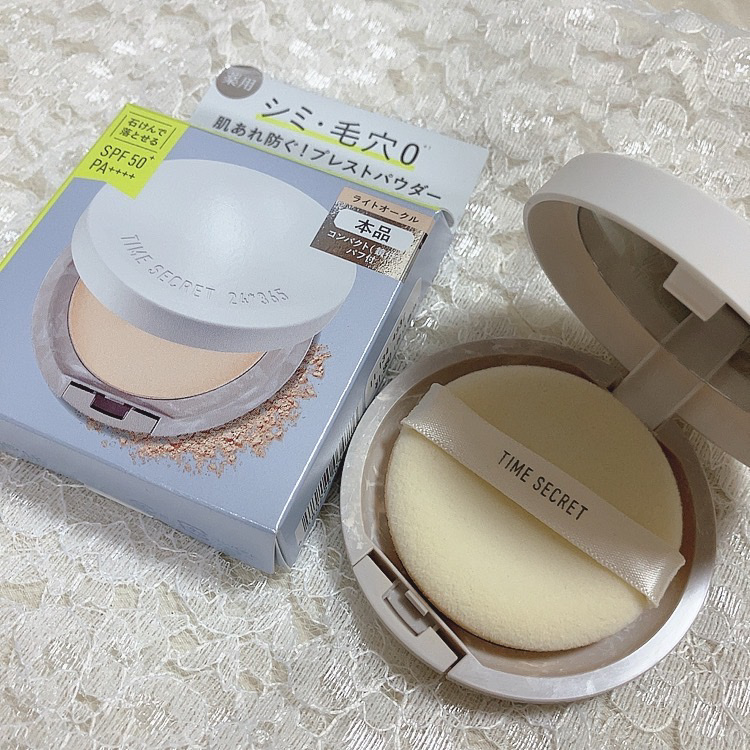 TIMESECRETミネラル薬用プレストパウダーライトオークル肌あれまでケアするファンデ級カバー力のプレストパウダー見た目がオシャレでしっかりした容器ミラーが付いているので手鏡代わりにしています厚塗り感がなく毛穴が綺麗に隠せるので日焼け止めの...