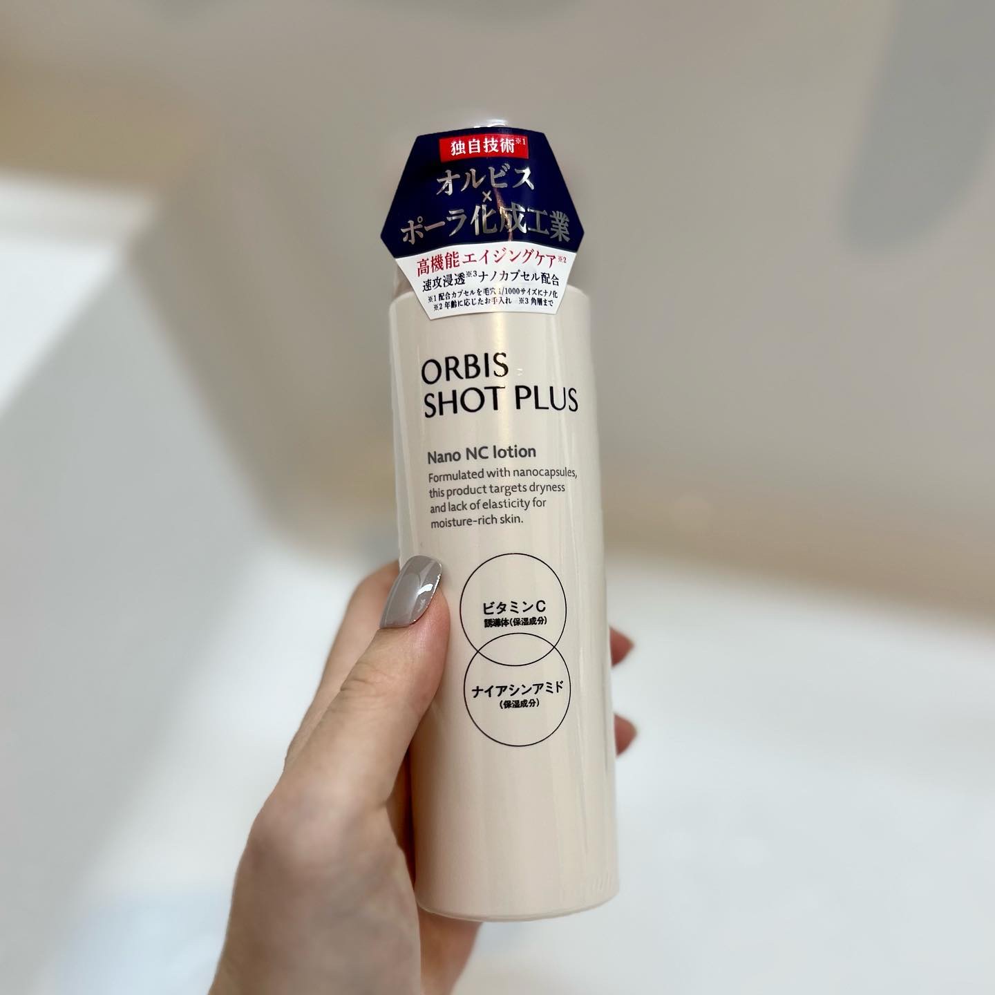 - 「ORBIS SHOT PLUS(オルビス ショットプラス)」には、肌に必要な保湿成分を届ける力(=SHOT)、そしてオルビスが培ってきた、ビューティの可能性を信じ「美しくなりたい」という想いに寄り添い、その先の肌の美しさまでも約束していく(=PLUS)、という想いを込めています。 そして今回、ポーラ化成工業の 90 年の化粧品開発研究から得た、エイジングケア*1知見を結集。美容保湿成分を早く・角層隅々まで届けることで、気になる乾燥・ハリ・くすみ*2など、年を重ねるごとに気になるエイジングサイン*3を狙い撃つ高浸透*4エイジングケアシリーズです。エイジングサインへ角層隅々まで美容成分を届けるナノ NC デリバーカプセル*5の力で、肌に乗せた瞬間、美容保湿成分がぐんぐん浸透*4してくれる濃密な“濃ぃじゅわ”化粧水です。肌のくすみ*2やハリ低下など、悩み*2の元に寄り添いながらケアしてくれます。 *1 年齢に応じたお手入れ *2 乾燥による *3 乾燥・ハリ低下 *4 角層まで *5 フィトステロールズ、水添レシチン、(C12-20)アルキルグルコシド=基剤