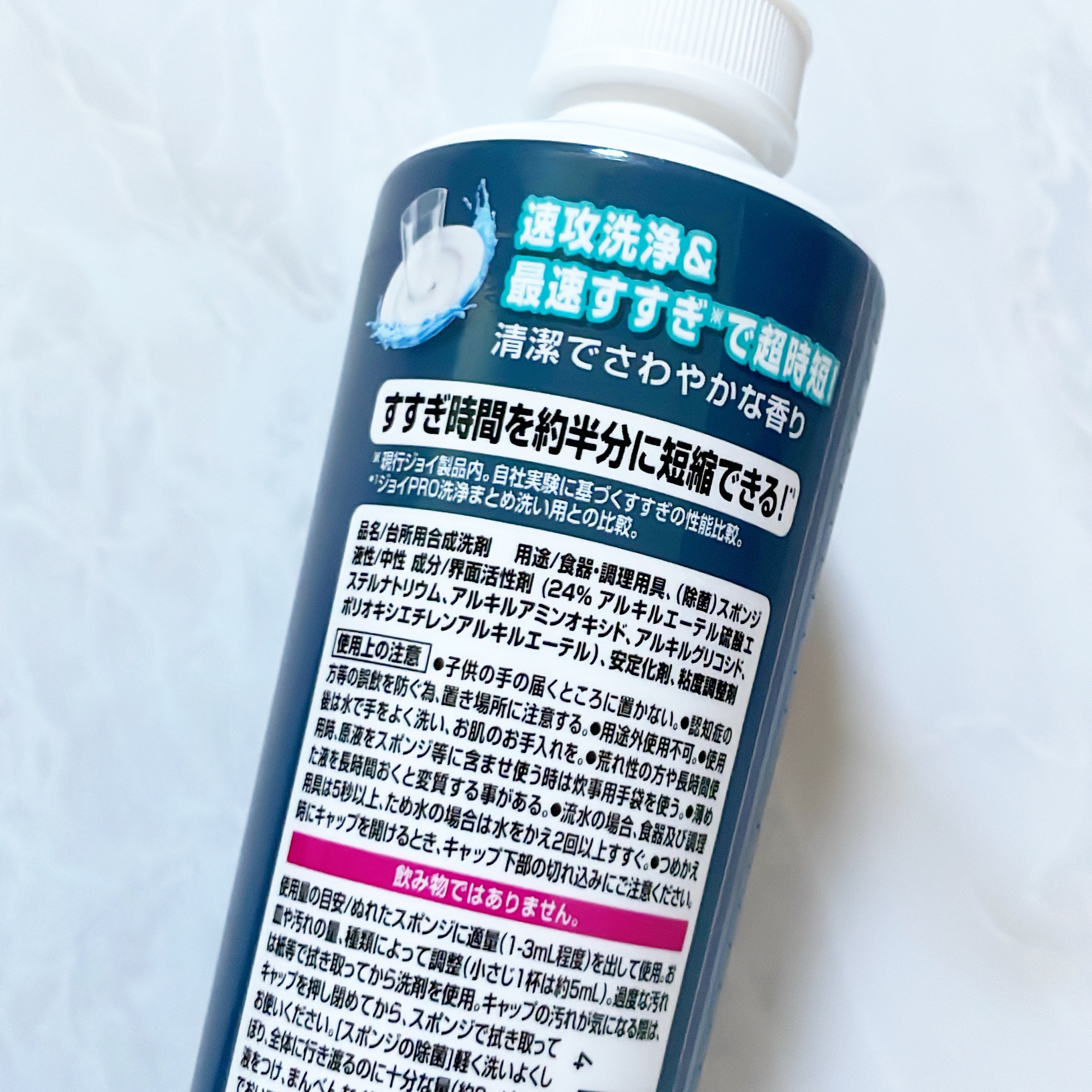 頑固な油汚れにもヘタりにくい「泡持ちMAXテクノロジー」によって、現行ジョイ製品の中でも最長の泡持ちを実現👏 すすぎ時間が約半分(*2)に短縮されるので、食器洗いの時短化ができます👌 きめの細かいもこもこの泡がヘタらないから、どんどんお皿洗いがはかどります👏