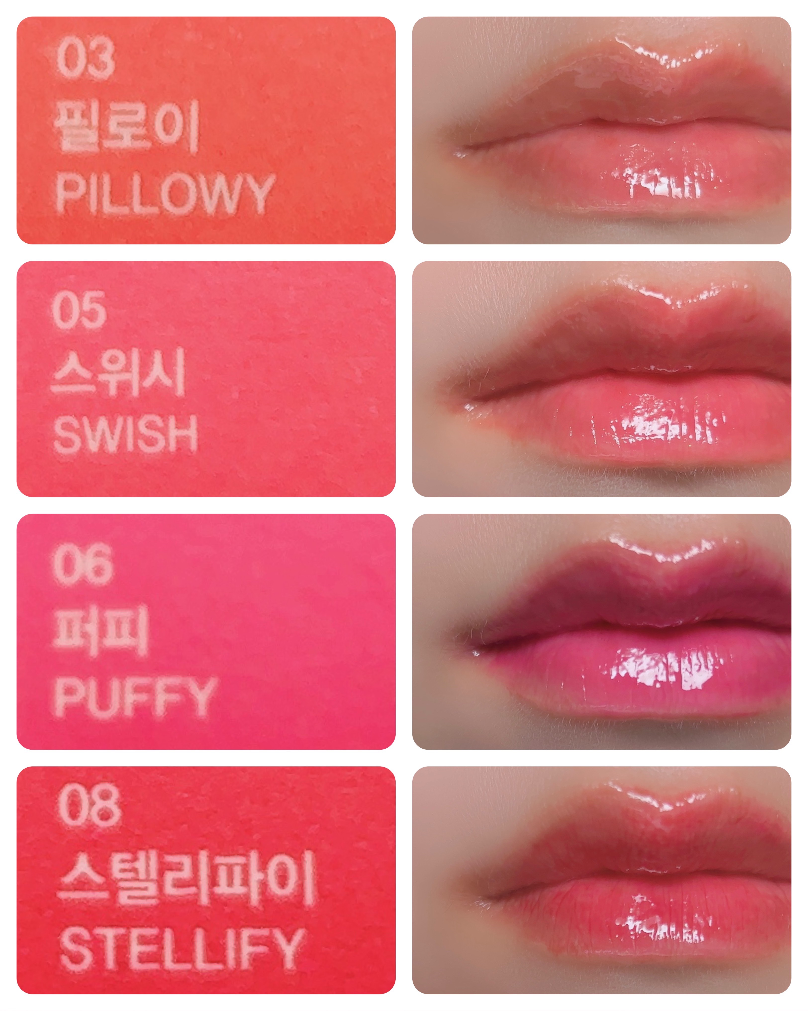 - <01 アモリスト(AMORIST)> リンゴ酸ジイソステアリル、ジフェニルシロキシフェニルトリメチコン、水、ジフェニルジメチコン、ビスジグリセリルポリアシルアジペート-2、水添ポリイソブテン、ポリグリセリン-3、ポリソルベート60、セチルPEG/PPG-10/1ジメチコン、イソステアリン酸ソルビタン、BG、ペンチレングリコール、1,2-ヘキサンジオール、ジメチコン、(アクリル酸ヒドロキシエチル/アクリロイルジメチルタウリンNa)コポリマー、セテアレス-20、スクワラン、黄5、エチルヘキシルグリセリン、香料、赤227、赤104(1)、リナロール、青1、ヘキシルシンナマル、リモネン、ホホバ種子油、アンズ核油、ツバキ種子油、トコフェロール <02 ビーミッシュ(BEAMISH)> リンゴ酸ジイソステアリル、ジフェニルシロキシフェニルトリメチコン、水、ビスジグリセリルポリアシルアジペート-2、ジフェニルジメチコン、水添ポリイソブテン、ポリグリセリン-3、ポリソルベート60、セチルPEG/PPG-10/1ジメチコン、イソステアリン酸ソルビタン、BG、1,2-ヘキサンジオール、ジメチコン、ペンチレングリコール、(アクリル酸ヒドロキシエチル/アクリロイルジメチルタウリンNa)コポリマー、セテアレス-20、スクワラン、酸化チタン、黄5、エチルヘキシルグリセリン、香料、赤227、赤104(1)、リナロール、水酸化Al、ポリアクリル酸アンモニウム、フェノキシエタノール、ヘキシルシンナマル、リモネン、アンズ核油、ツバキ種子油、ホホバ種子油、トコフェロール <03 ピロウィ(PILLOWY)> リンゴ酸ジイソステアリル、ジフェニルシロキシフェニルトリメチコン、水、ビスジグリセリルポリアシルアジペート-2、ジフェニルジメチコン、水添ポリイソブテン、ポリグリセリン-3、ポリソルベート60、セチルPEG/PPG-10/1ジメチコン、イソステアリン酸ソルビタン、BG、ジメチコン、ペンチレングリコール、1,2-ヘキサンジオール、(アクリル酸ヒドロキシエチル/アクリロイルジメチルタウリンNa)コポリマー、セテアレス-20、スクワラン、酸化チタン、エチルヘキシルグリセリン、黄5、香料、赤104(1)、水酸化Al、ポリアクリル酸アンモニウム、赤227、リナロール、フェノキシエタノール、青1、ヘキシルシンナマル、リモネン、アンズ核油、ツバキ種子油、ホホバ種子油、トコフェロール <04 ブラント(BLUNT)> リンゴ酸ジイソステアリル、ジフェニルシロキシフェニルトリメチコン、水、ビスジグリセリルポリアシルアジペート-2、ジフェニルジメチコン、水添ポリイソブテン、ポリグリセリン-3、ポリソルベート60、セチルPEG/PPG-10/1ジメチコン、イソステアリン酸ソルビタン、BG、1,2-ヘキサンジオール、ジメチコン、ペンチレングリコール、(アクリル酸ヒドロキシエチル/アクリロイルジメチルタウリンNa)コポリマー、セテアレス-20、スクワラン、酸化チタン、黄5、エチルヘキシルグリセリン、香料、赤227、水酸化Al、ポリアクリル酸アンモニウム、リナロール、フェノキシエタノール、青1、ヘキシルシンナマル、リモネン、ホホバ種子油、アンズ核油、ツバキ種子油、トコフェロール <05 スウィッシュ(SWISH)> リンゴ酸ジイソステアリル、ジフェニルシロキシフェニルトリメチコン、水、ビスジグリセリルポリアシルアジペート-2、ジフェニルジメチコン、水添ポリイソブテン、ポリグリセリン-3、ポリソルベート60、セチルPEG/PPG-10/1ジメチコン、イソステアリン酸ソルビタン、BG、ジメチコン、ペンチレングリコール、1,2-ヘキサンジオール、(アクリル酸ヒドロキシエチル/アクリロイルジメチルタウリンNa)コポリマー、酸化チタン、セテアレス-20、スクワラン、エチルヘキシルグリセリン、黄5、香料、赤227、黄4、水酸化Al、ポリアクリル酸アンモニウム、赤104(1)、リナロール、フェノキシエタノール、青1、ヘキシルシンナマル、リモネン、アンズ核油、ツバキ種子油、ホホバ種子油 <06 パフィ(PUFFY)> リンゴ酸ジイソステアリル、ジフェニルシロキシフェニルトリメチコン、水、ジフェニルジメチコン、ビスジグリセリルポリアシルアジペート-2、水添ポリイソブテン、ポリグリセリン-3、ポリソルベート60、セチルPEG/PPG-10/1ジメチコン、イソステアリン酸ソルビタン、BG、1,2-ヘキサンジオール、ペンチレングリコール、ジメチコン、(アクリル酸ヒドロキシエチル/アクリロイルジメチルタウリンNa)コポリマー、セテアレス-20、スクワラン、酸化チタン、エチルヘキシルグリセリン、赤227、香料、黄5、水酸化Al、赤104(1)、ポリアクリル酸アンモニウム、リナロール、黄4、フェノキシエタノール、ヘキシルシンナマル、リモネン、ホホバ種子油、アンズ核油、ツバキ種子油、トコフェロール <07 アシッドローズ(ACID ROSE)> リンゴ酸ジイソステアリル、ジフェニルシロキシフェニルトリメチコン、水、ビスジグリセリルポリアシルアジペート-2、ジフェニルジメチコン、水添ポリイソブテン、ポリグリセリン-3、ポリソルベート60、セチルPEG/PPG-10/1ジメチコン、イソステアリン酸ソルビタン、BG、1,2-ヘキサンジ