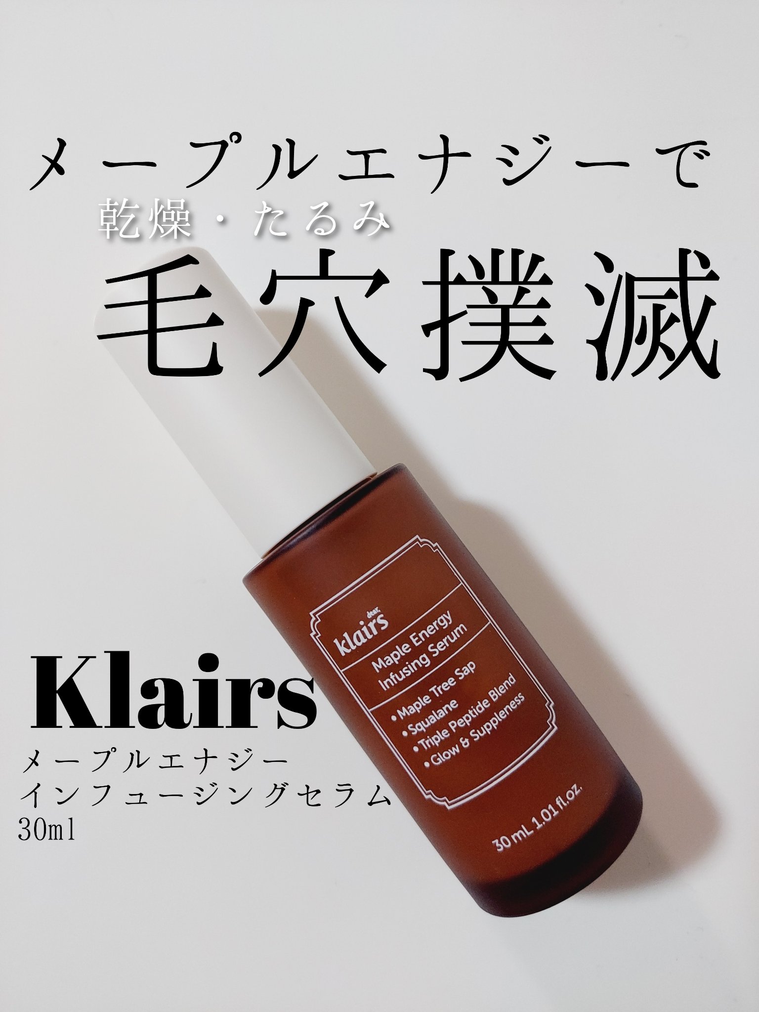糸を引くほどの粘度が特徴の「メープルエナジーインフュージングセラム」は外部からの刺激によって傷んだ水分バリアの改善や、弾力の改善、ツヤ改善に効果が期待できるシロップセラム。 精製水の代わりにメープルの樹液がなんと52.8%配合された贅沢過ぎる逸品!使い始めて2週間ほど経ちましたが、乾燥知らずで過ごせています。