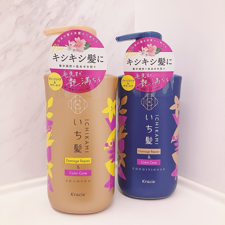 いち髪ダメージリペア&カラーケアラインシャンプー・コンディショナーをいただきました。 もっちりとした泡立ちで摩擦少なく、すっきりと洗い上げ◎ シャンプーだけでリンスをした後かのような、指通りなめらかな手触りになり驚きました❣️