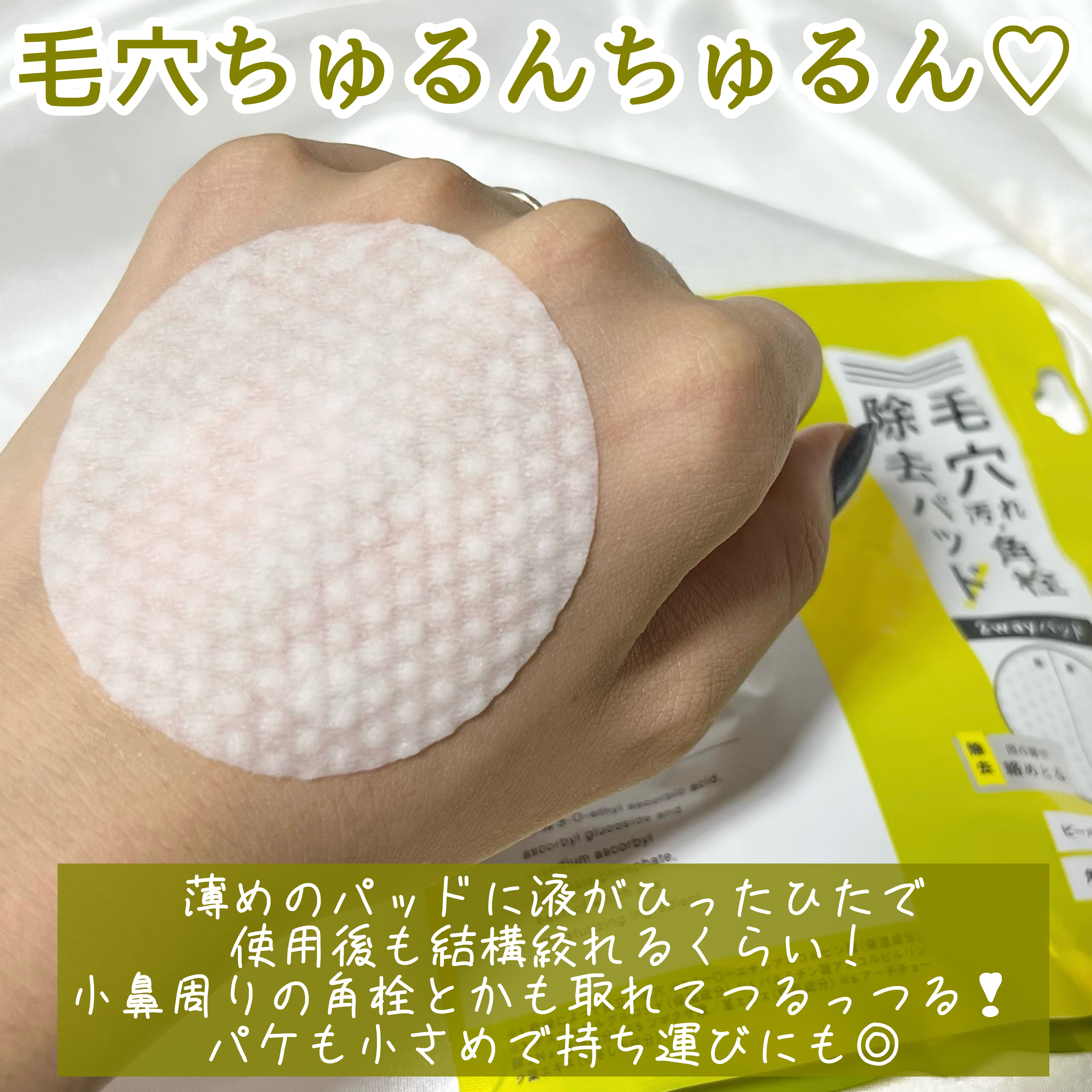 | パッド自体は柔らかく、美容液も多め。拭き取った後はしっかりとお肌が潤います♡ | 詳細を見る | ||