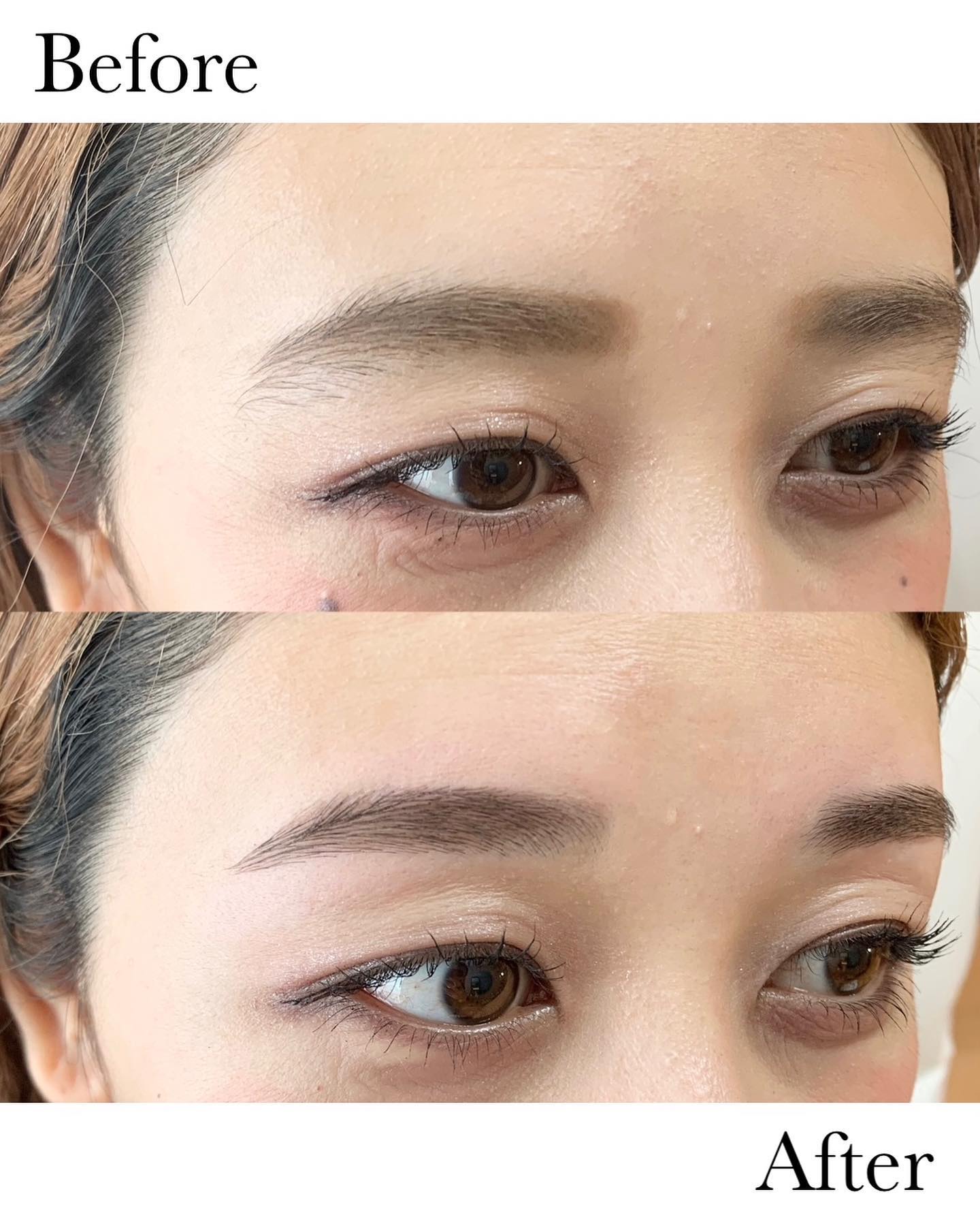 自眉の生え方に左右差があることが悩みのお客様 骨格や筋肉のつき方を見て左右対称になるように合わせて、自眉に馴染む自然な眉になりました✨ 自分ではどうにもならない眉毛の悩みは一度プロに相談するのが、垢抜けへの近道! 眉毛ワックス+ラッシュリフト→¥12,500 骨格診断付◎眉毛ワックス→¥7,700