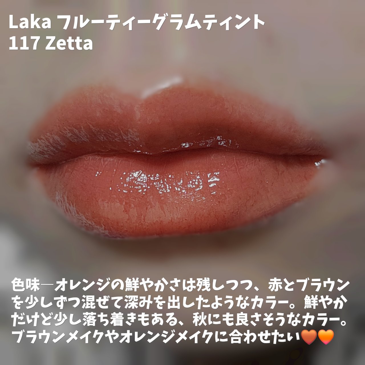 みずみずしくてそんなに重たくならないです。 うるちゅるになります🥰 青リンゴみたいな匂いで美味しい😊 オレンジだけどパキパキなオレンジって訳ではなく、イエべ秋でも似合うような落ち着きも持ち合わせているオレンジという印象🧡 ティント効果があるので悪くは無いですが、感動するほど良い訳では無いと思います。