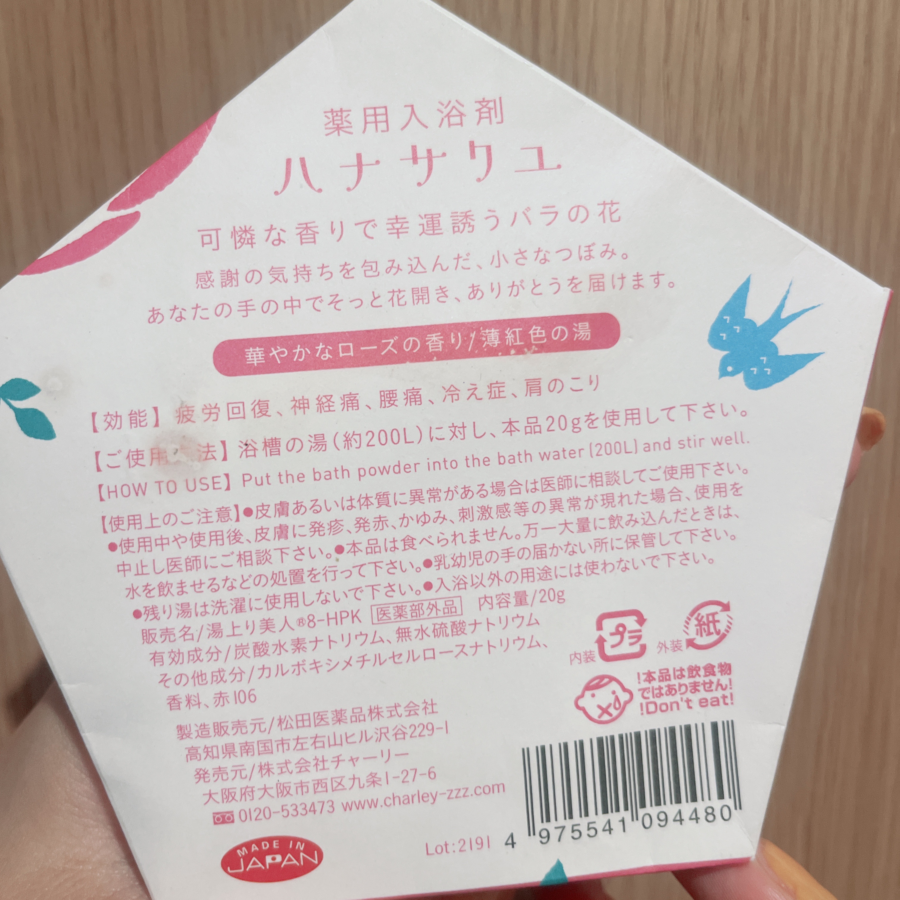 体の芯からしっかりあたためて対策しましょう‼︎ そんな時におすすめなのがこの入浴剤です!あたたまるだけでなく、いい成分もたくさん入っているのでぜひチェックしてください🐰🤍 有効成分が温浴効果を高め、疲労回復を促進。 さらに、洗い流すことで汚れを取り除き、やさしくお肌をケアします。 私は3回分を購入したのですが、体のあたたまりはすごく感じました‼︎ ですが、3回分だと使用頻度が少ないので使い続けたらもっと効果が強く出るのかなと思います!