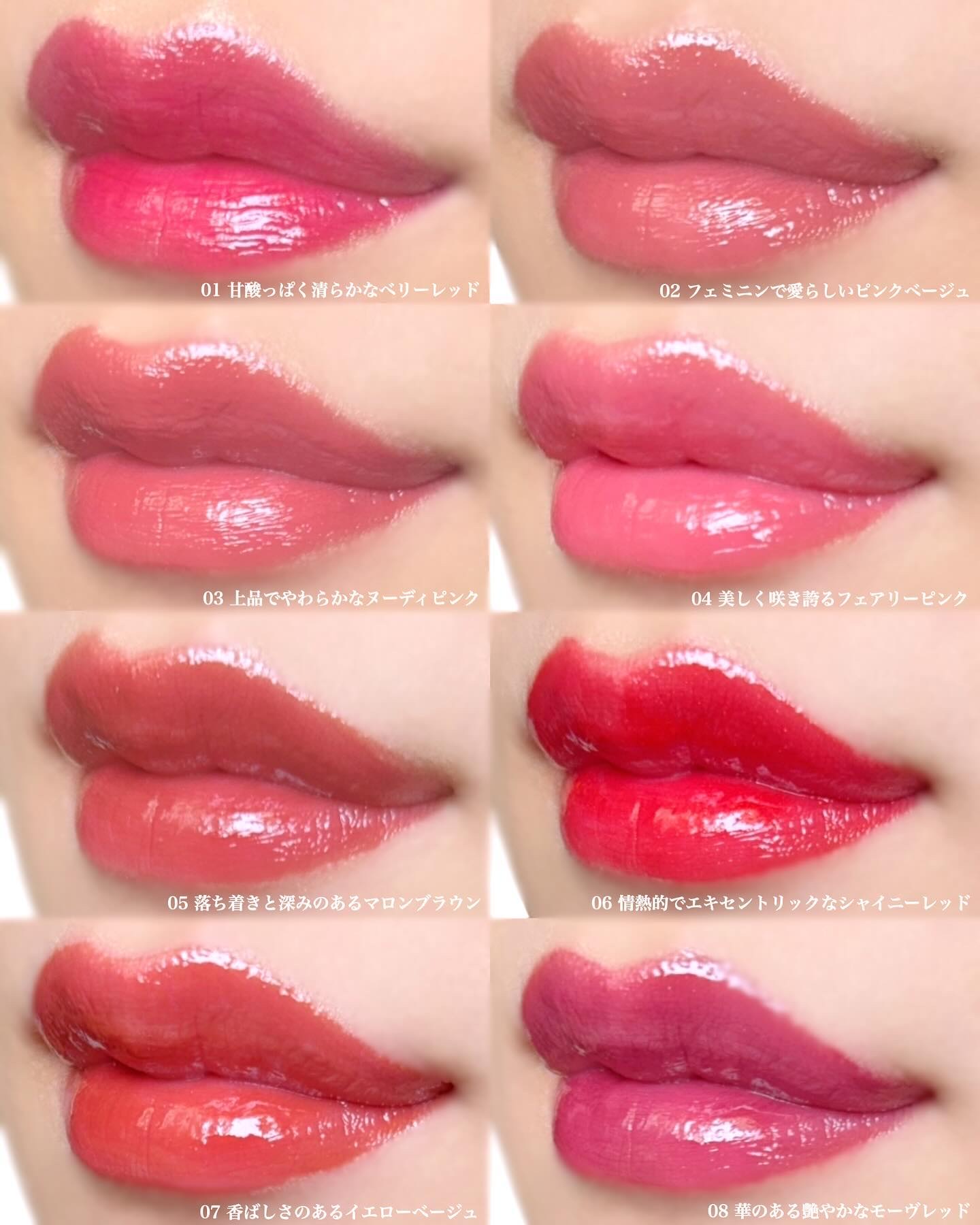特に既にSNSでバズっていたものやバズりを確信したカラー6色をレビューしました🥺💓 輝きや高保湿のリップケア力、ボリュームアップというトリプル効果はそのままに、ヒアルロン酸とチェリー オイルが配合された自然由来の新処方に。 ヌードからモーヴ、ブリックからコーラル、そしてレッドトーンまで幅広い24色のカラーバリエーション。 そしてクラシック、インテンス、シマー、ホログラフィックという4つの質感! どれもめちゃくちゃ可愛くて全部揃えたくなっちゃう!誰でも得意なカラーが見つかるカラバリです◎ マスク生活が終わったらいち早く使いたいリップです💄
