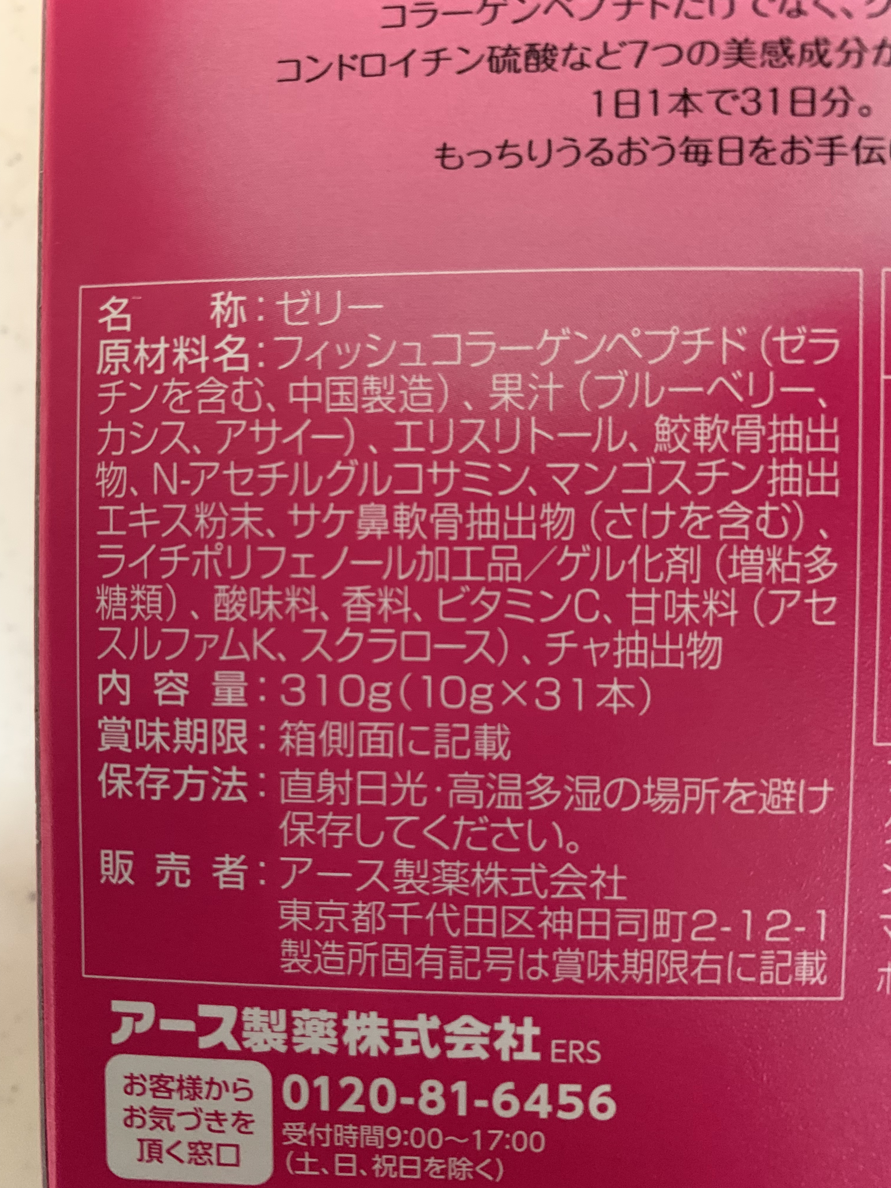 アサイーベリー味のゼリーです。コラーゲンとビタミンCが取れるので良いです🙆♀️ もっちりしたしっかりめの食感で、味も食感も個人的には好きなほうです。 1ヶ月分、Amazonで2000円しないくらいで購入。
