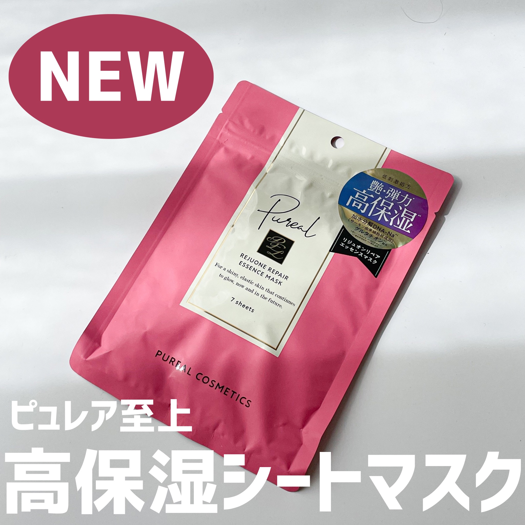 - ピュレア至上、高保湿のシートマスク。 今も未来も美しさ続く、【艶やかに輝く弾力*のある素肌】へがコンセプト。 ハリ・弾力*から肌キメを整え艶やかな肌へ導きます。 サーモン由来の加水分解DNA-Na(整肌保湿成分)をメイン成分にグルタチオン(整肌成分)、パンテノール(整肌成分)など話題の成分を配合した贅沢なデイリーエイジングケア*1マスク。 保湿から、肌荒れ予防ケアまで乾燥によるあらゆる肌悩みに集中アプローチ。 *肌にハリを与える *1 年齢に応じたケア 2024/8/30(ロフト先行発売日)