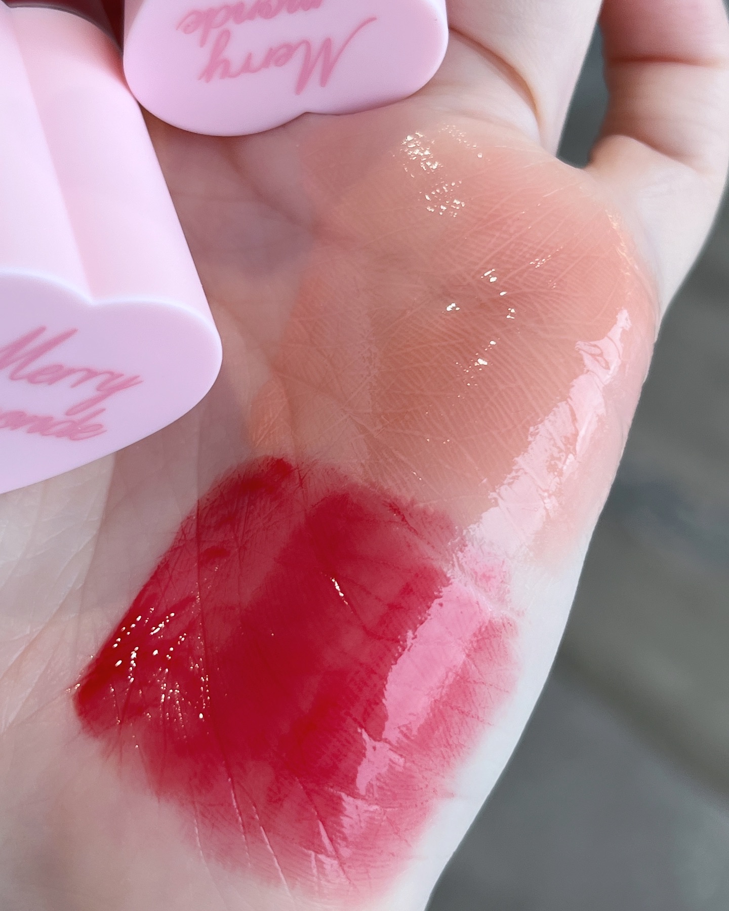 可愛いの塊メリーモンドの人気商品 ハートティントから新色2カラー リンゴを1口かじったような血色感ある レッドカラー 植物性天然オイルのヴィーガン成分で塗り心地しっとり