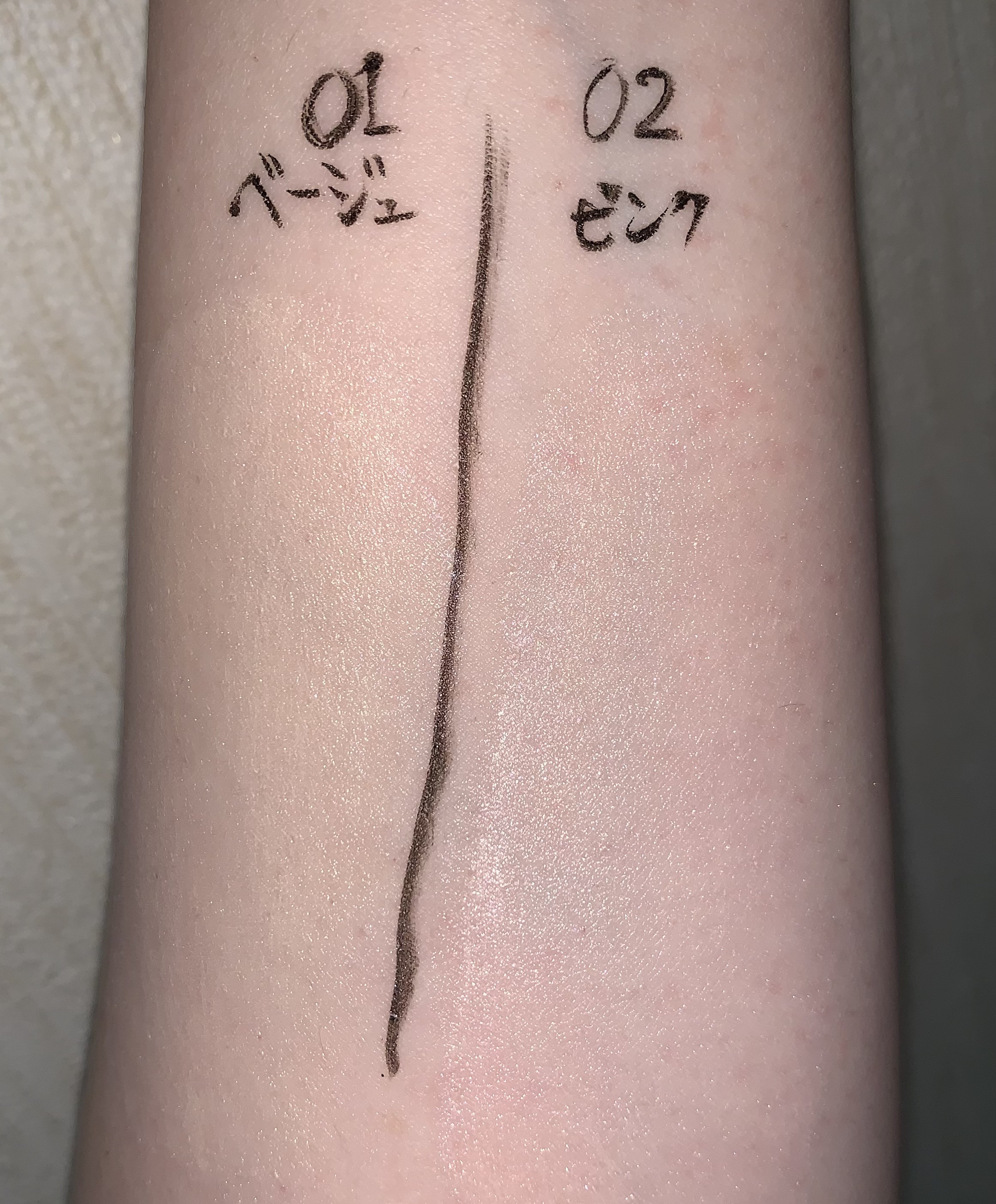 - <01 ライトベージュ> 水、ジメチコン、BG、酸化チタン、グリセリン、合成フルオロフロゴパイト、PEG-9ポリジメチルシロキシエチルジメチコン、ポリグリセリル-3ポリジメチルシロキシエチルジメチコン、メチルグルセス-20、水酸化Al、ステアリン酸、トリエチルヘキサノイン、(ジメチコン/(PEG-10/15))クロスポリマー、(ジメチコン/ビニルジメチコン)クロスポリマー、DPG、ヒアルロン酸Na、加水分解コラーゲン、スクワラン、ヒマワリ種子油脂肪酸フィトステリル、アルニカ花エキス、ラベンダー花エキス、カミツレ花エキス、ローズマリー葉エキス、オレンジ花水、ホホバ種子油、カニナバラ果実油、オリーブ果実油、(トウキ/シャクヤク/ジオウ)根/(センキュウ/ショウガ)根茎エキス、グリチルリチン酸2K、ジパルミチン酸アスコルビル、塩化Na、クエン酸Na、フェノキシエタノール、メチルパラベン、トコフェロール、ステアロイルグルタミン酸2Na、シクロペンタシロキサン、エタノール、硫酸Ba、ヒドロキシアパタイト、マイカ、酸化鉄、酸化亜鉛 <02 スウィートピンク> 水、ジメチコン、BG、酸化チタン、グリセリン、合成フルオロフロゴパイト、PEG-9ポリジメチルシロキシエチルジメチコン、ポリグリセリル-3ポリジメチルシロキシエチルジメチコン、メチルグルセス-20、水酸化Al、ステアリン酸、トリエチルヘキサノイン、(ジメチコン/(PEG-10/15))クロスポリマー、(ジメチコン/ビニルジメチコン)クロスポリマー、DPG、ヒアルロン酸Na、加水分解コラーゲン、スクワラン、ヒマワリ種子油脂肪酸フィトステリル、アルニカ花エキス、ラベンダー花エキス、カミツレ花エキス、ローズマリー葉エキス、オレンジ花水、ホホバ種子油、カニナバラ果実油、オリーブ果実油、(トウキ/シャクヤク/ジオウ)根/(センキュウ/ショウガ)根茎エキス、グリチルリチン酸2K、ジパルミチン酸アスコルビル、塩化Na、クエン酸Na、フェノキシエタノール、メチルパラベン、トコフェロール、ステアロイルグルタミン酸2Na、シクロペンタシロキサン、エタノール、硫酸Ba、ヒドロキシアパタイト、マイカ、酸化鉄、酸化亜鉛 <03 ペールブルー> 水、ジメチコン、BG、酸化チタン、グリセリン、合成フルオロフロゴパイト、PEG-9ポリジメチルシロキシエチルジメチコン、ポリグリセリル-3ポリジメチルシロキシエチルジメチコン、メチルグルセス-20、水酸化Al、ステアリン酸、トリエチルヘキサノイン、(ジメチコン/(PEG-10/15))クロスポリマー、(ジメチコン/ビニルジメチコン)クロスポリマー、DPG、ヒアルロン酸Na、加水分解コラーゲン、スクワラン、ヒマワリ種子油脂肪酸フィトステリル、アルニカ花エキス、ラベンダー花エキス、カミツレ花エキス、ローズマリー葉エキス、オレンジ花水、ホホバ種子油、カニナバラ果実油、オリーブ果実油、(トウキ/シャクヤク/ジオウ)根/(センキュウ/ショウガ)根茎エキス、グリチルリチン酸2K、ジパルミチン酸アスコルビル、塩化Na、クエン酸Na、フェノキシエタノール、メチルパラベン、トコフェロール、ステアロイルグルタミン酸2Na、シクロペンタシロキサン、トリイソステアリン酸ポリグリセリル-2、エタノール、硫酸Ba、ヒドロキシアパタイト、マイカ、グンジョウ、酸化亜鉛