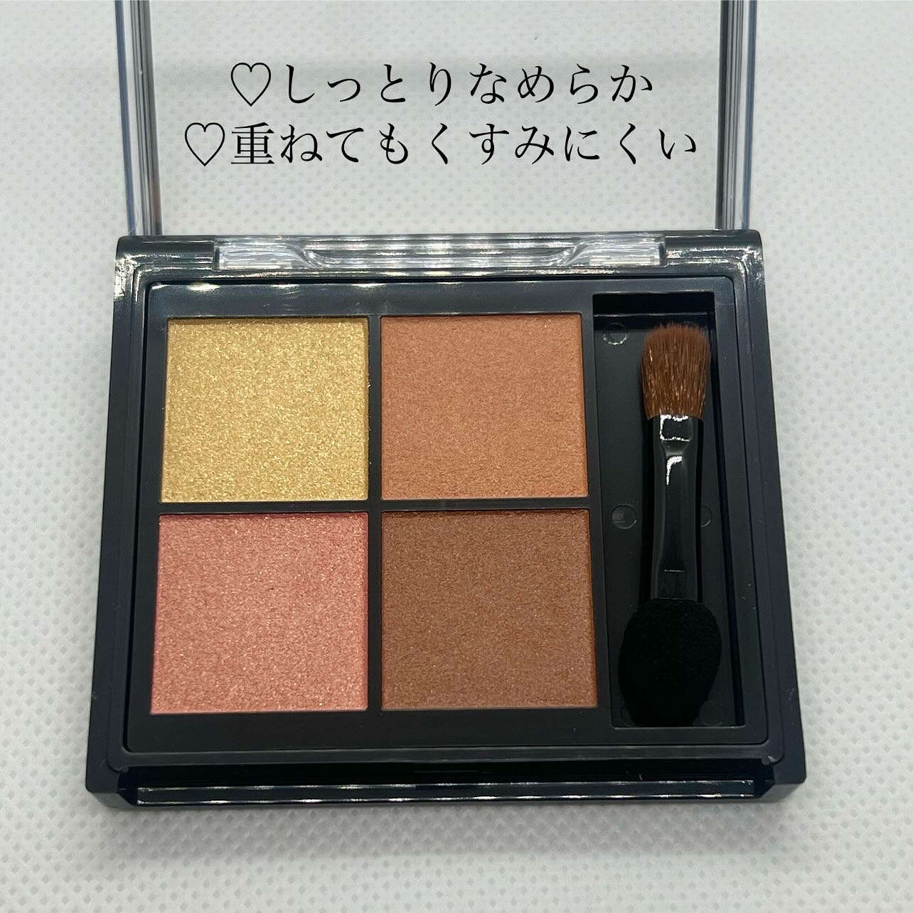 9月に発売されたキスミーフェルムのアイシャドウパレット。02 アプリコットビジューは多幸感あふれるカラーでイエベさんに似合いそう🌷 色みもすごく綺麗&チップ付きなので使いやすさも◎