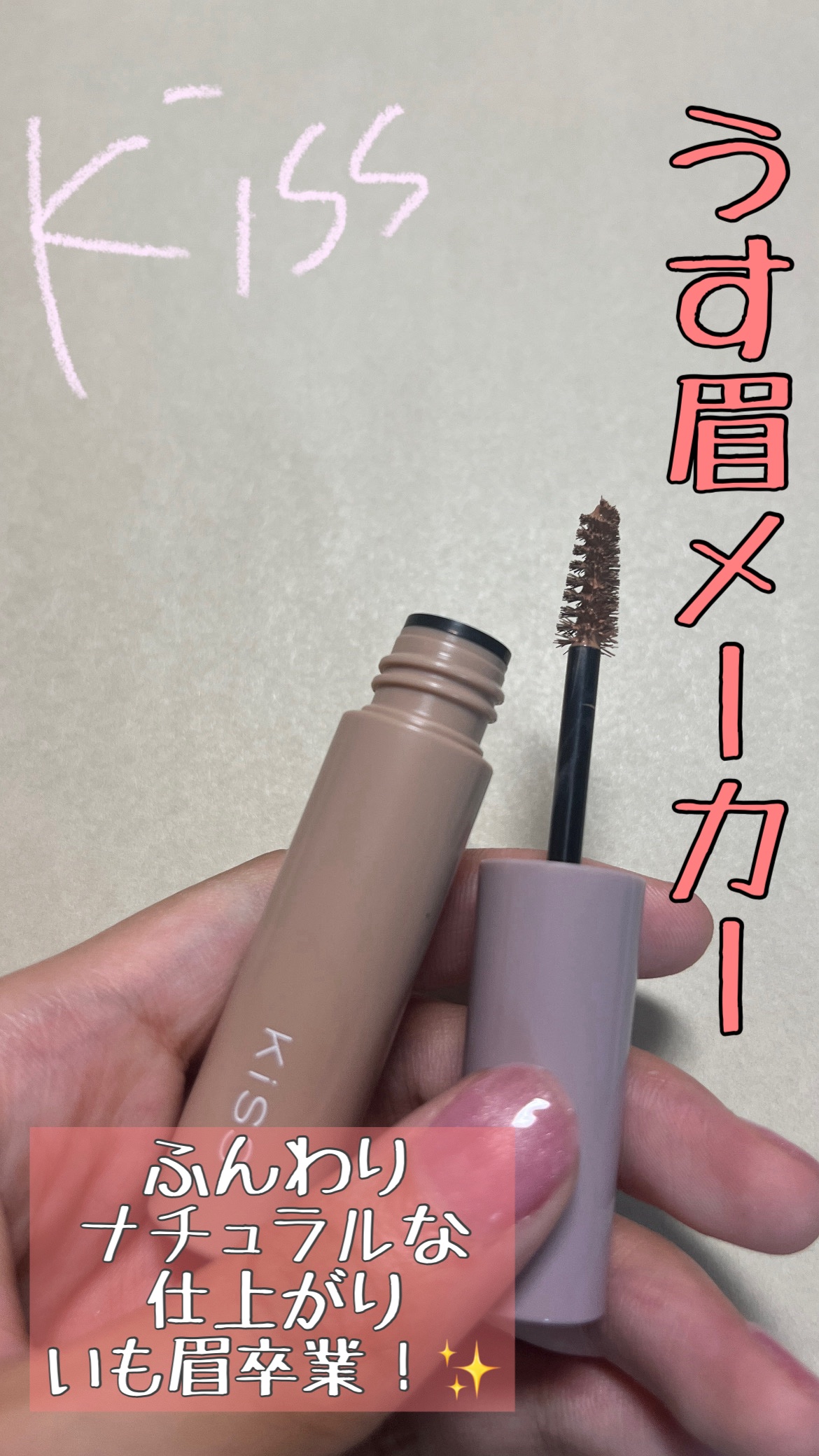 めちゃめちゃ愛用している眉マスカラ🥺💓 KiSSのうす眉メーカーをレビューです🙌🏻💕 コンシーラーカラー設計 肌になじみながら眉色をしっかり消し、濃い眉の印象を抑えて柔らかく見せます✨️ 地肌に付きにくいのって結構重要で、落ちにくいのも本当に助かるポイント👍🏻✨
