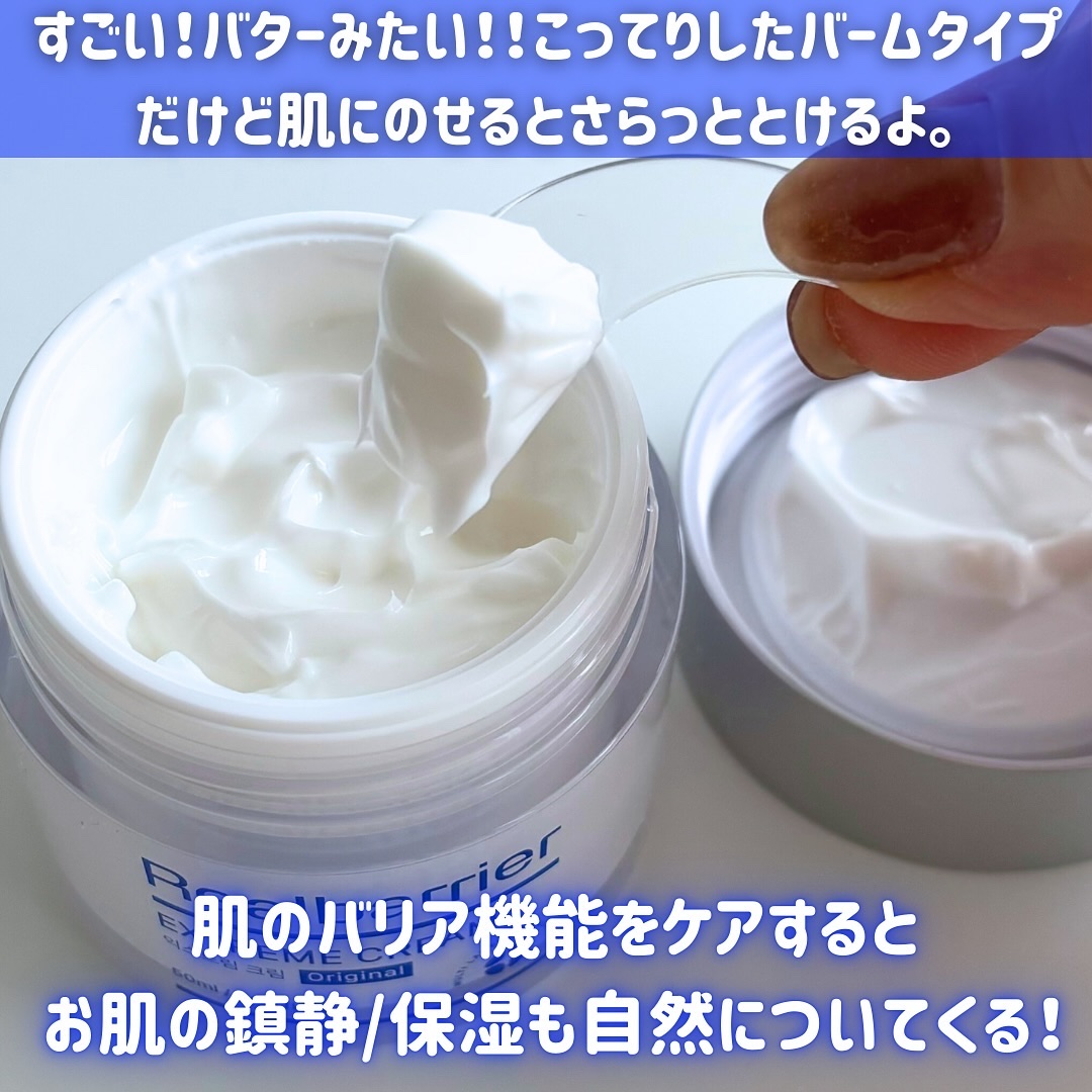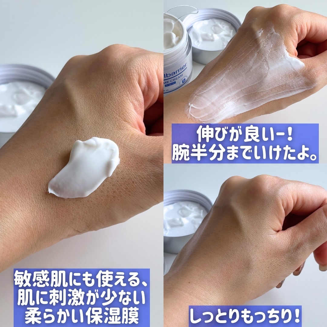独自開発した肌バリア技術MLE®︎に独自成分オメガセラミドを適用したクリーム💙 こってりとしたテクスチャーのクリームなんだけど、肌に馴染ませていくとさらっと溶けて軽い質感になるよ🫶 保湿感があるけど、ベタつかないから年中使えるクリーム💙✨