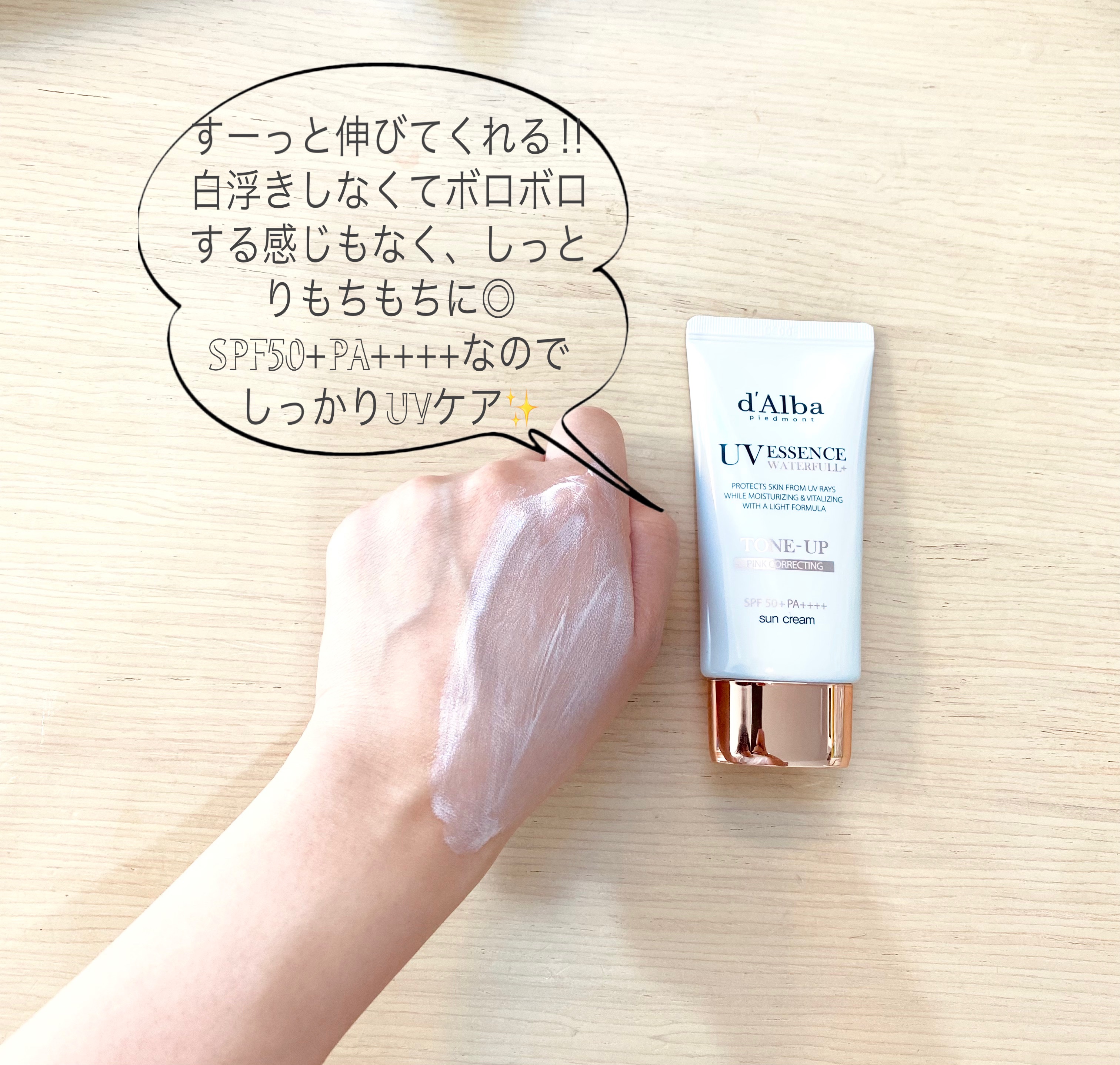 こんばんは!ダルバウォータフルトーンアップサンクリームのレビュー投稿です!このシリーズはパープルも使用したことがあり愛用商品です♪クリームは明るいピンクカラーで少し水々しさがあり伸びがいいです☺️ピンク色なので白浮きすることもなく血色感を出し...