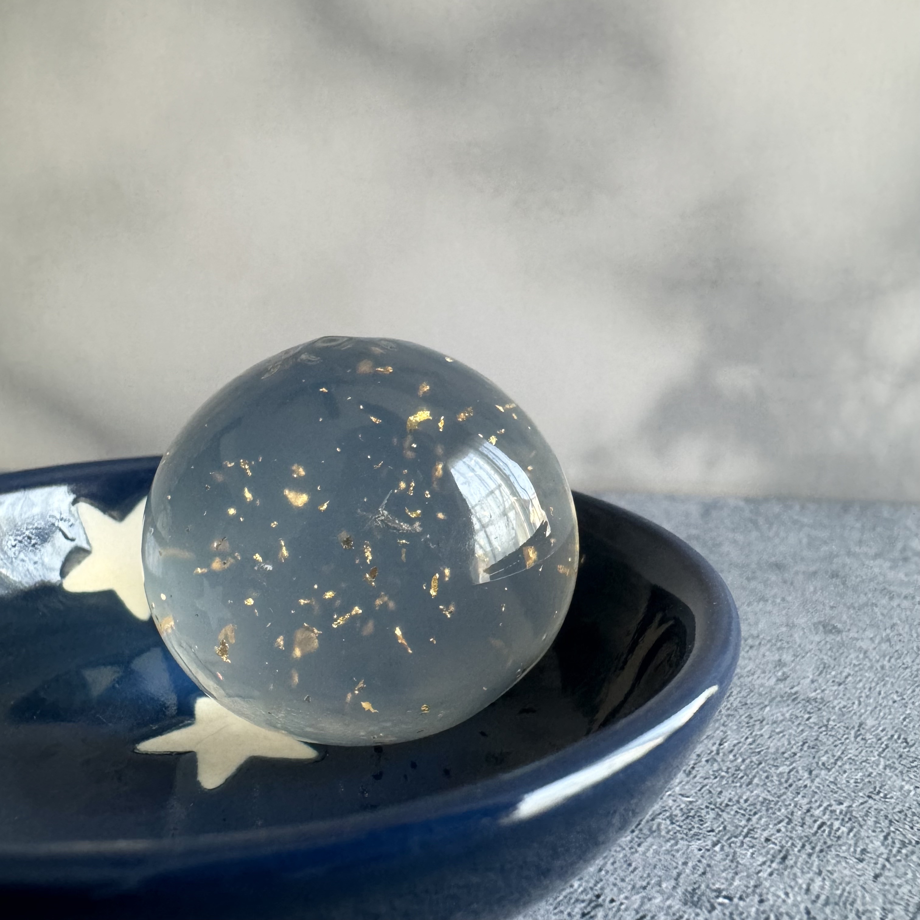 沖縄もち石鹸は、毛穴よりも小さいウルトラファインナノバブルが毛穴の奥へと入り込み汚れや角栓を浮かしてくれるんだって! ぷるぷるのゼリーのようなテクスチャーで、金箔がちりばめられており、高級感があるなと思う。 ぷにぷにの弾力と、とろりとしたスフレの泡が心地よく、気持ちいい洗い心地。