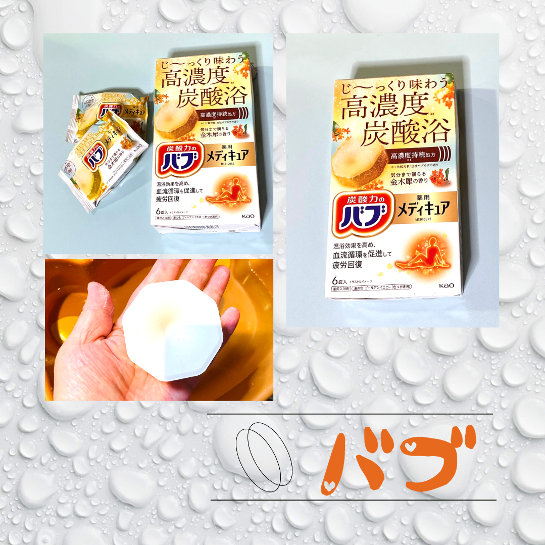 タブレット錠が大きく、3分ぐらい発泡を楽しめました。 モンスターバブルほどきめ細かく勢いのある泡ではないですが、シューッとした炭酸系の入浴剤。 一瞬金木犀を感じる……ようなフラワー系のいい香り。 めちゃくちゃ濃い金木犀の香りを期待してると「あれ?」ってなっちゃうかもしれないけど、全体的な香りとしてはとてもいい香りでした。 安く買えたらまたリピートしたいかな☺💓