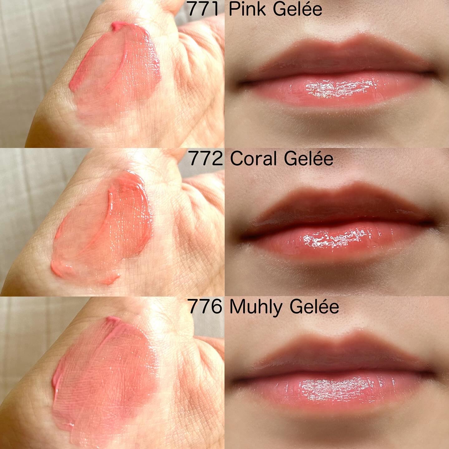 ※771,772は過去の提供品ですDintoブラーゼリーボリュームリップティント771PinkGelée772CoralGelée774NuttyGelée776MuhlyGelée各¥1,496(税込)※Qoo10メガ割クーポン適用時昨日動...
