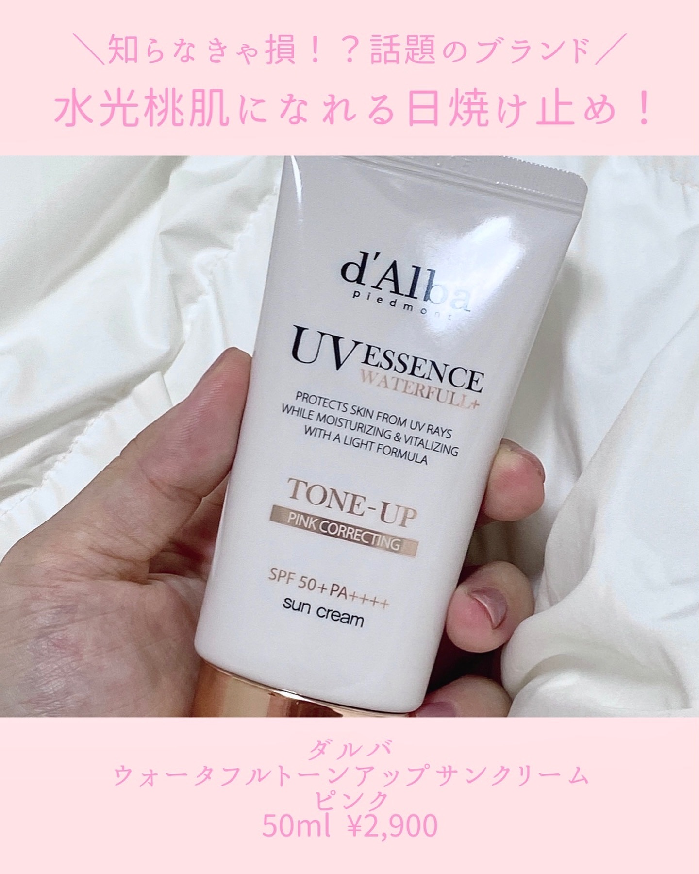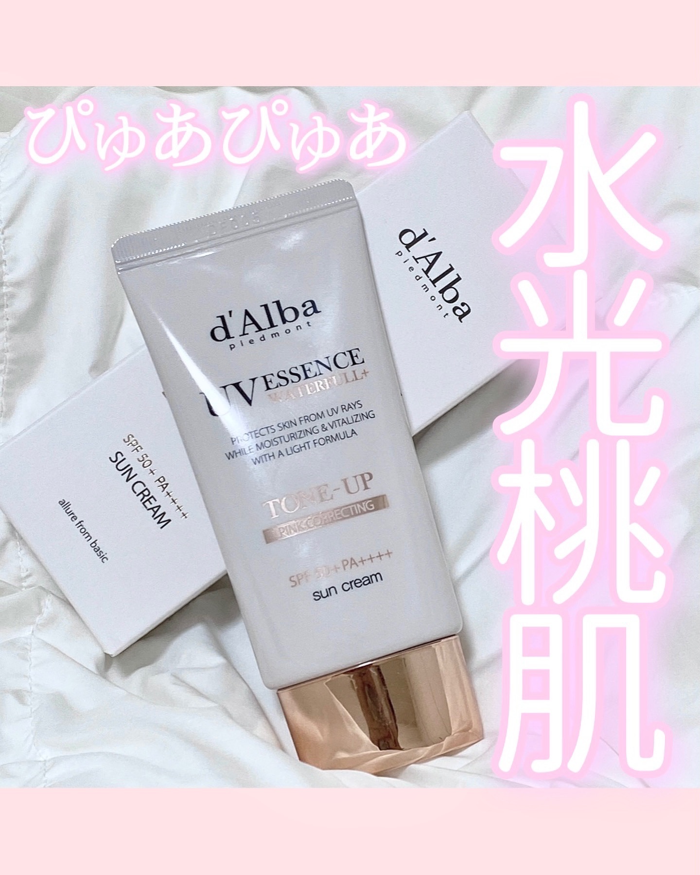 ダルバのピンク💗トーンアップサンクリーム◆d’AlbaダルバウォータフルトーンアップサンクリームSPF50+PA++++自然な桃色でトーンアップ血色感のある肌へSNSでよく見かける大人気UV下地!気になってました🥺💗薄ピンクのみずみず...