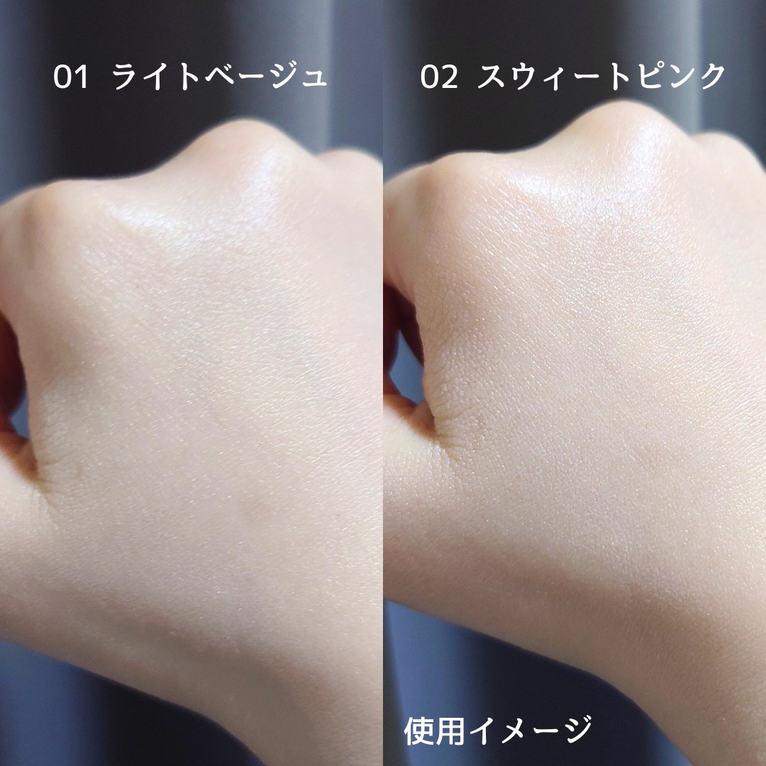 - <01 ライトベージュ> 水、ジメチコン、BG、酸化チタン、グリセリン、合成フルオロフロゴパイト、PEG-9ポリジメチルシロキシエチルジメチコン、ポリグリセリル-3ポリジメチルシロキシエチルジメチコン、メチルグルセス-20、水酸化Al、ステアリン酸、トリエチルヘキサノイン、(ジメチコン/(PEG-10/15))クロスポリマー、(ジメチコン/ビニルジメチコン)クロスポリマー、DPG、ヒアルロン酸Na、加水分解コラーゲン、スクワラン、ヒマワリ種子油脂肪酸フィトステリル、アルニカ花エキス、ラベンダー花エキス、カミツレ花エキス、ローズマリー葉エキス、オレンジ花水、ホホバ種子油、カニナバラ果実油、オリーブ果実油、(トウキ/シャクヤク/ジオウ)根/(センキュウ/ショウガ)根茎エキス、グリチルリチン酸2K、ジパルミチン酸アスコルビル、塩化Na、クエン酸Na、フェノキシエタノール、メチルパラベン、トコフェロール、ステアロイルグルタミン酸2Na、シクロペンタシロキサン、エタノール、硫酸Ba、ヒドロキシアパタイト、マイカ、酸化鉄、酸化亜鉛 <02 スウィートピンク> 水、ジメチコン、BG、酸化チタン、グリセリン、合成フルオロフロゴパイト、PEG-9ポリジメチルシロキシエチルジメチコン、ポリグリセリル-3ポリジメチルシロキシエチルジメチコン、メチルグルセス-20、水酸化Al、ステアリン酸、トリエチルヘキサノイン、(ジメチコン/(PEG-10/15))クロスポリマー、(ジメチコン/ビニルジメチコン)クロスポリマー、DPG、ヒアルロン酸Na、加水分解コラーゲン、スクワラン、ヒマワリ種子油脂肪酸フィトステリル、アルニカ花エキス、ラベンダー花エキス、カミツレ花エキス、ローズマリー葉エキス、オレンジ花水、ホホバ種子油、カニナバラ果実油、オリーブ果実油、(トウキ/シャクヤク/ジオウ)根/(センキュウ/ショウガ)根茎エキス、グリチルリチン酸2K、ジパルミチン酸アスコルビル、塩化Na、クエン酸Na、フェノキシエタノール、メチルパラベン、トコフェロール、ステアロイルグルタミン酸2Na、シクロペンタシロキサン、エタノール、硫酸Ba、ヒドロキシアパタイト、マイカ、酸化鉄、酸化亜鉛 <03 ペールブルー> 水、ジメチコン、BG、酸化チタン、グリセリン、合成フルオロフロゴパイト、PEG-9ポリジメチルシロキシエチルジメチコン、ポリグリセリル-3ポリジメチルシロキシエチルジメチコン、メチルグルセス-20、水酸化Al、ステアリン酸、トリエチルヘキサノイン、(ジメチコン/(PEG-10/15))クロスポリマー、(ジメチコン/ビニルジメチコン)クロスポリマー、DPG、ヒアルロン酸Na、加水分解コラーゲン、スクワラン、ヒマワリ種子油脂肪酸フィトステリル、アルニカ花エキス、ラベンダー花エキス、カミツレ花エキス、ローズマリー葉エキス、オレンジ花水、ホホバ種子油、カニナバラ果実油、オリーブ果実油、(トウキ/シャクヤク/ジオウ)根/(センキュウ/ショウガ)根茎エキス、グリチルリチン酸2K、ジパルミチン酸アスコルビル、塩化Na、クエン酸Na、フェノキシエタノール、メチルパラベン、トコフェロール、ステアロイルグルタミン酸2Na、シクロペンタシロキサン、トリイソステアリン酸ポリグリセリル-2、エタノール、硫酸Ba、ヒドロキシアパタイト、マイカ、グンジョウ、酸化亜鉛