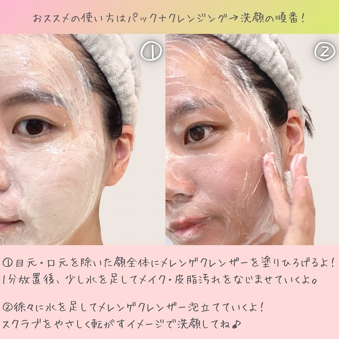 洗顔だけじゃなくて、クレンジングとパックもできるの優秀だよね 洗い上がりは、急いで化粧水しなくてもいいぐらいしっとりもちもち! ☑️肌にやさしいものを使いたい方 ☑️時短したいけどスキンケアには気を配りたい方 ☑️スイーツな気分を味わいたい方🍰
