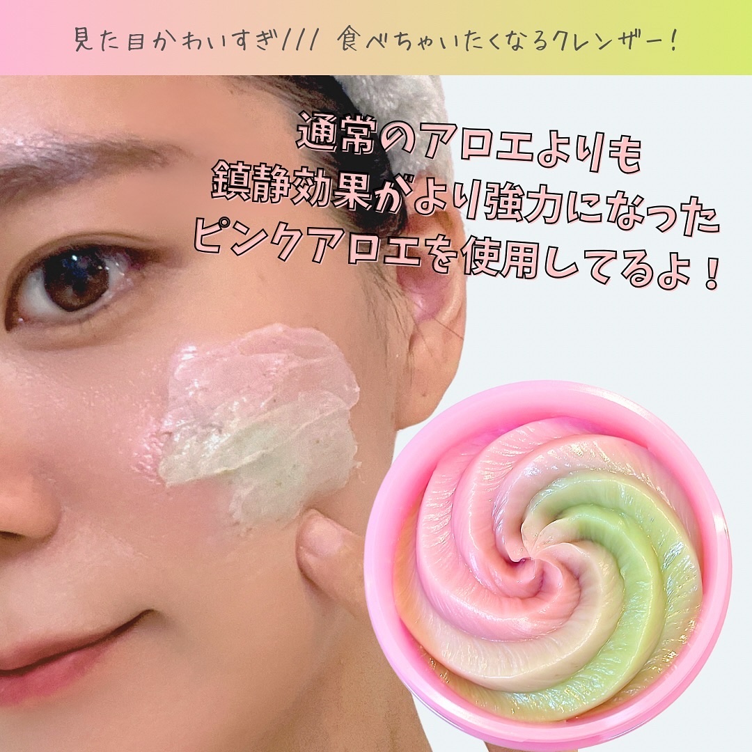 4in1の新感覚メレンゲクレンザー🎀ˊ˗ ピンクと黄緑の2色になっててスクラブが入ってるけど粒が小さいから塗布してるときに痛くないのが嬉しい🌸 洗い上がりはしっとりしてて乾燥感やピリつきを感じないのが◎ スクラブが苦手な人は泡立てネットで先に泡立てるときめ細かい泡になってスクラブのザラザラ感がなくなるからオススメ🕊️
