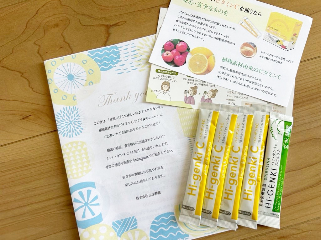 「ハイ・ゲンキ」の玄米酵素で有名な株式会社玄米酵素様の「ハイ・ゲンキC」 - ̗̀🍋 ̖́- ゆらぎやストレス、バリア機能をアップさせたい方におすすめのアイテムです🧃🌟 ハイ・ゲンキCに含まれるビタミンCはアセロラとレモンから作られた植物素材由来のものを使用しており、なんと化学合成されたビタミンCは不使用😳😳 サラサラした顆粒タイプで、口の中でサッと溶けるから凄く飲みやすい‼️ お味は穀物(玄米)のまろやかな風味とレモンの様な柑橘系の爽やかな風味が一緒になった感じ。