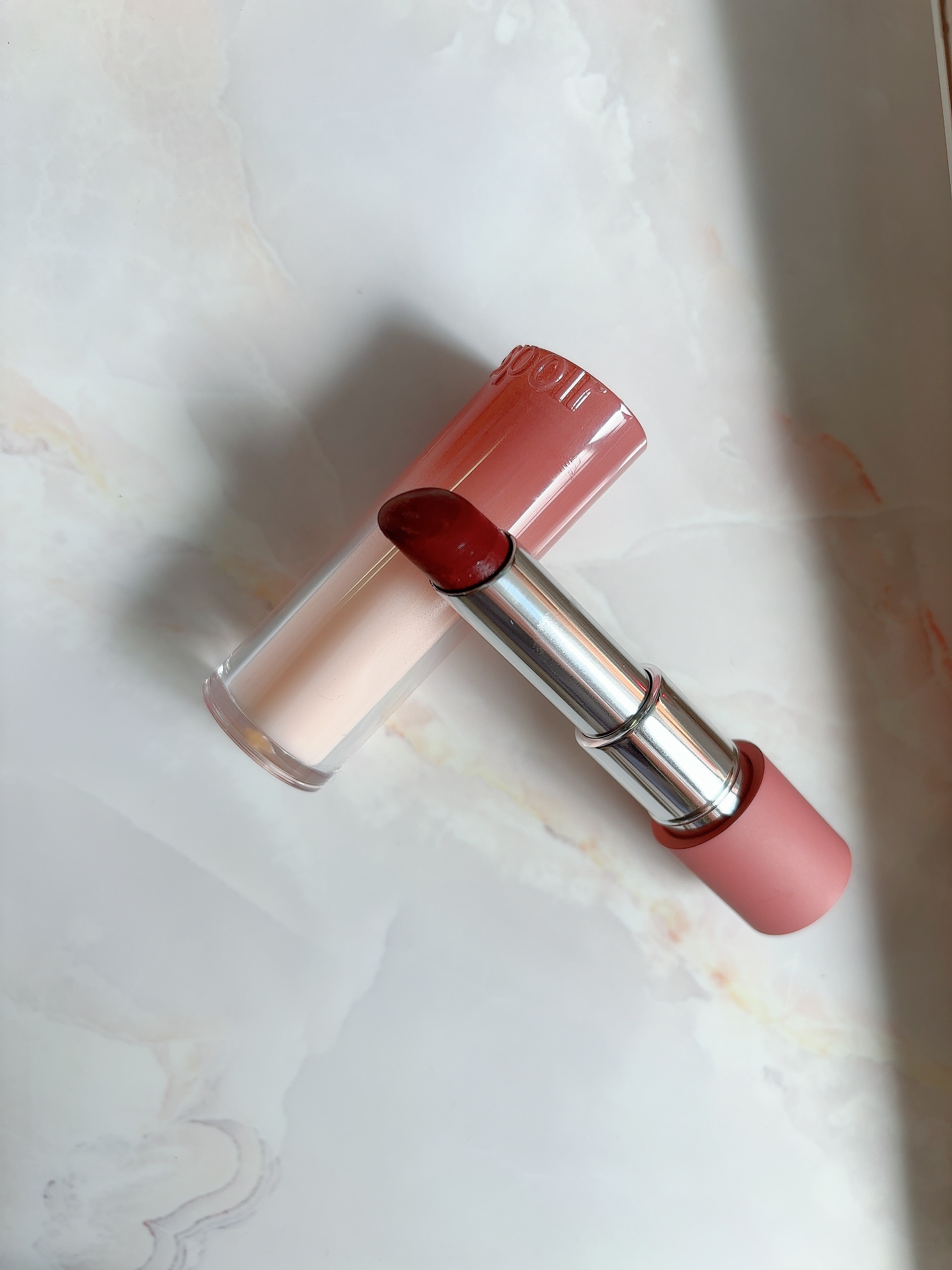 これ使ってみたけど粘膜色で落ち着いたピンク。とっっっても使いやすい色でした! グリーンパール(ラメ)入りだそうで肉眼でみると細かいラメが見えますが実際に塗ってみると唇をよーくみてもあまりよくわからないくらいのラメでした。 使いやすく可愛いのでオススメです!
