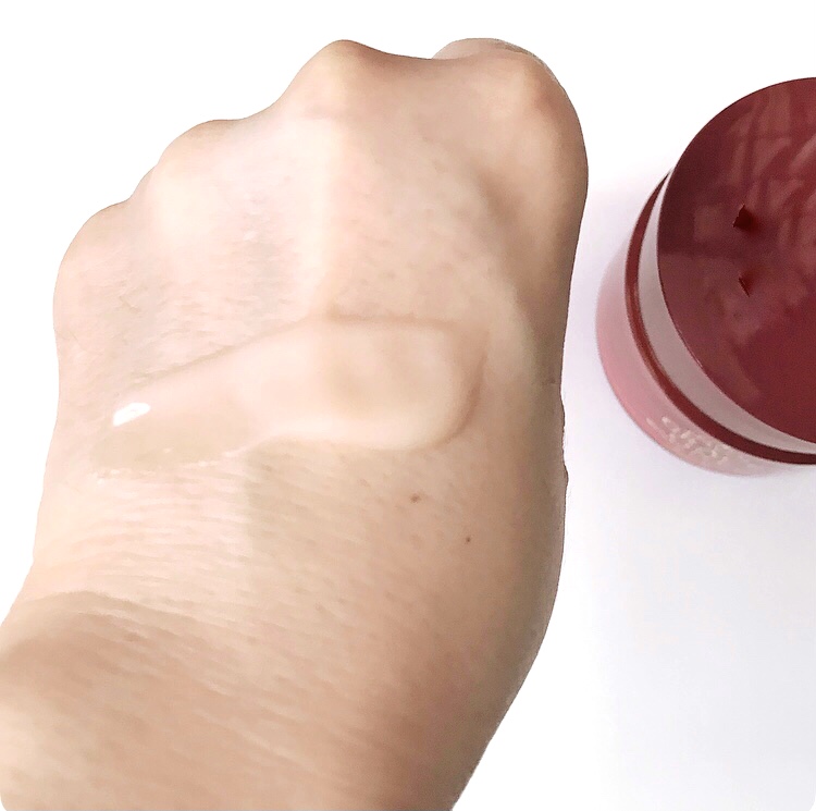 濃くなるシミもケアする シワ改善×美白のオールインワン! しわや美白ケアができるオールインワンジェル、忙しい朝に使いました。 手のひらに取ると、滑らかなテクスチャーです。
