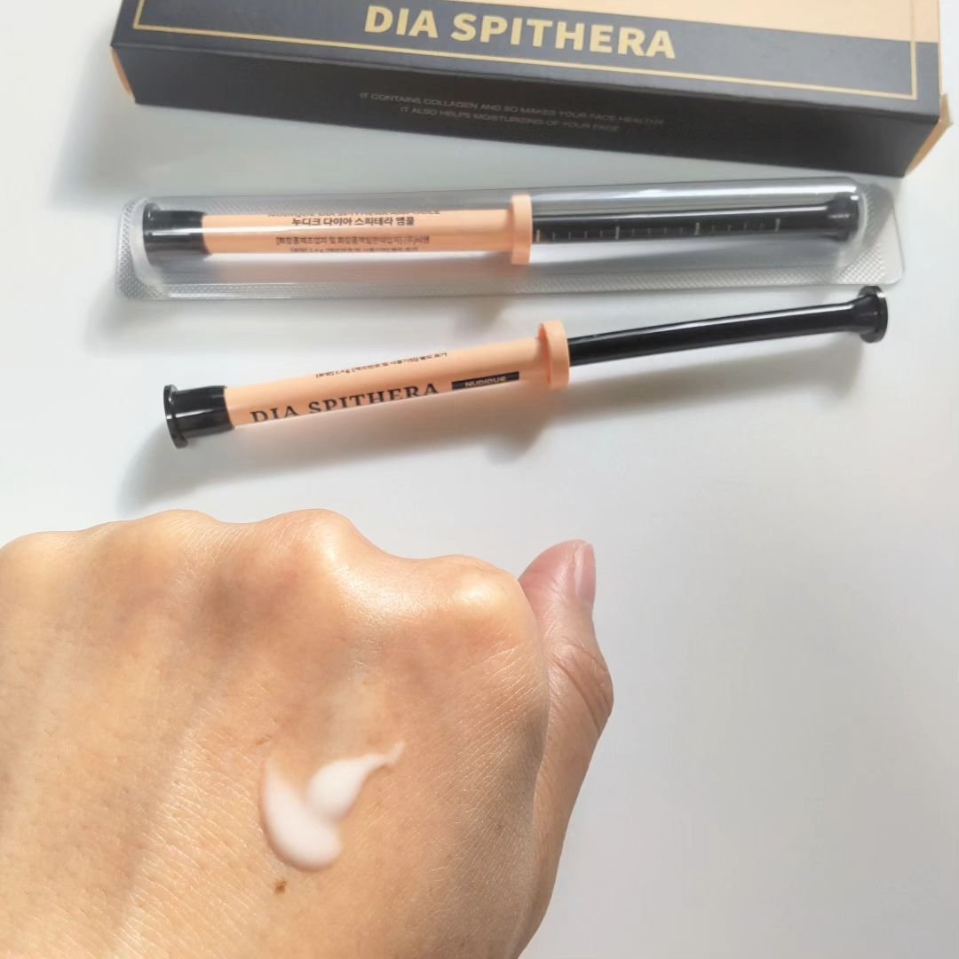 肌の内側まで浸透し、有効成分が直接肌に伝達✨ 注射器1本!1回分にダイヤコーティングされたスピキュール[リドルショット]5,000ショット入り! ダイヤコーティングが肌浸透時の有効成分吸収率を高めてくれるそう💎 フランス産直輸入コラーゲンを含む7種のコラーゲンが50%、およびペプタイト、アミノ酸、ビタミンなどの皮膚栄養成分を49種含有しており、人体適用実験でリフティング効果を立証してるんだって! 注射器タイプだから手がベトベトにならないし、使いやすかった!結構たっぷり入ってたよ◎