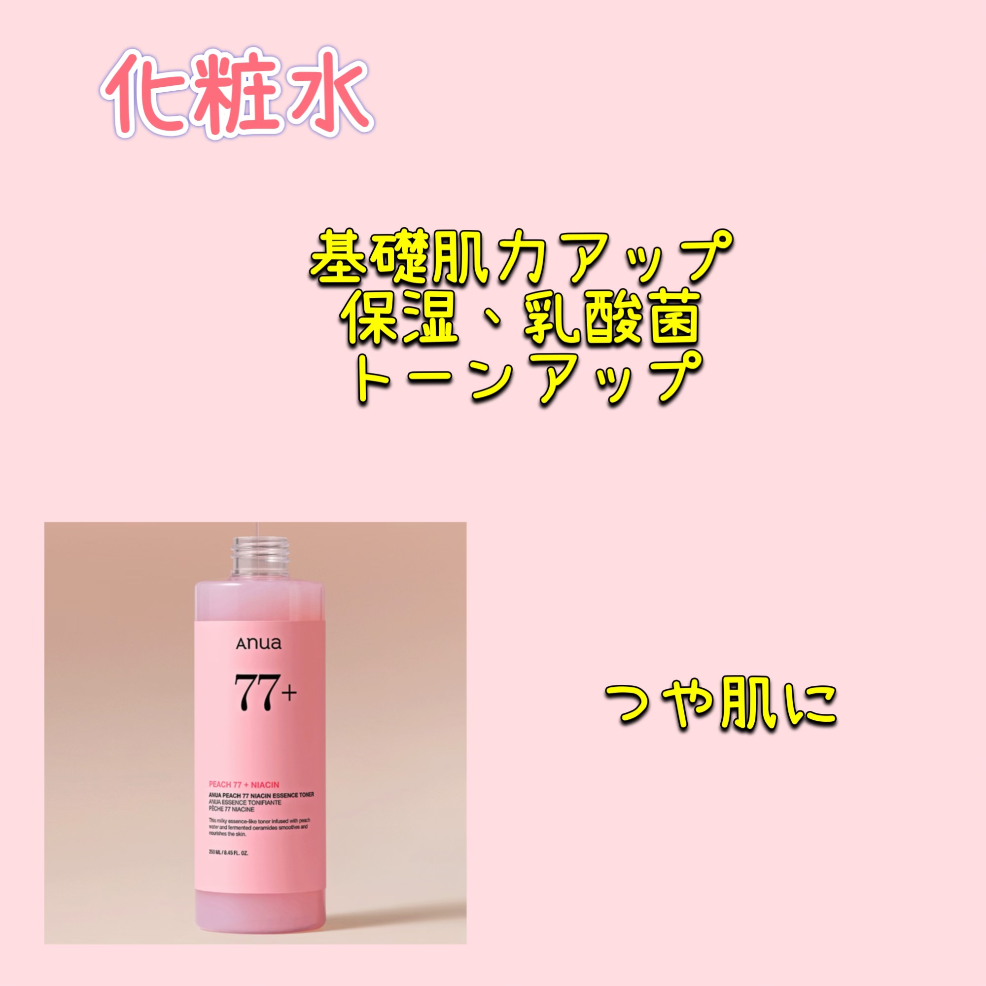 Anua桃77%ナイアシンエッセンストナー250mlかなり前にアヌアスキンケア研究部というものでアヌアの公式様よりご提供いただいものです。旧パッケージです。公式サイト情報✂浮いた角質がお悩みの方、メイク崩れでお悩みの方、乾燥して肌のごわつきが...