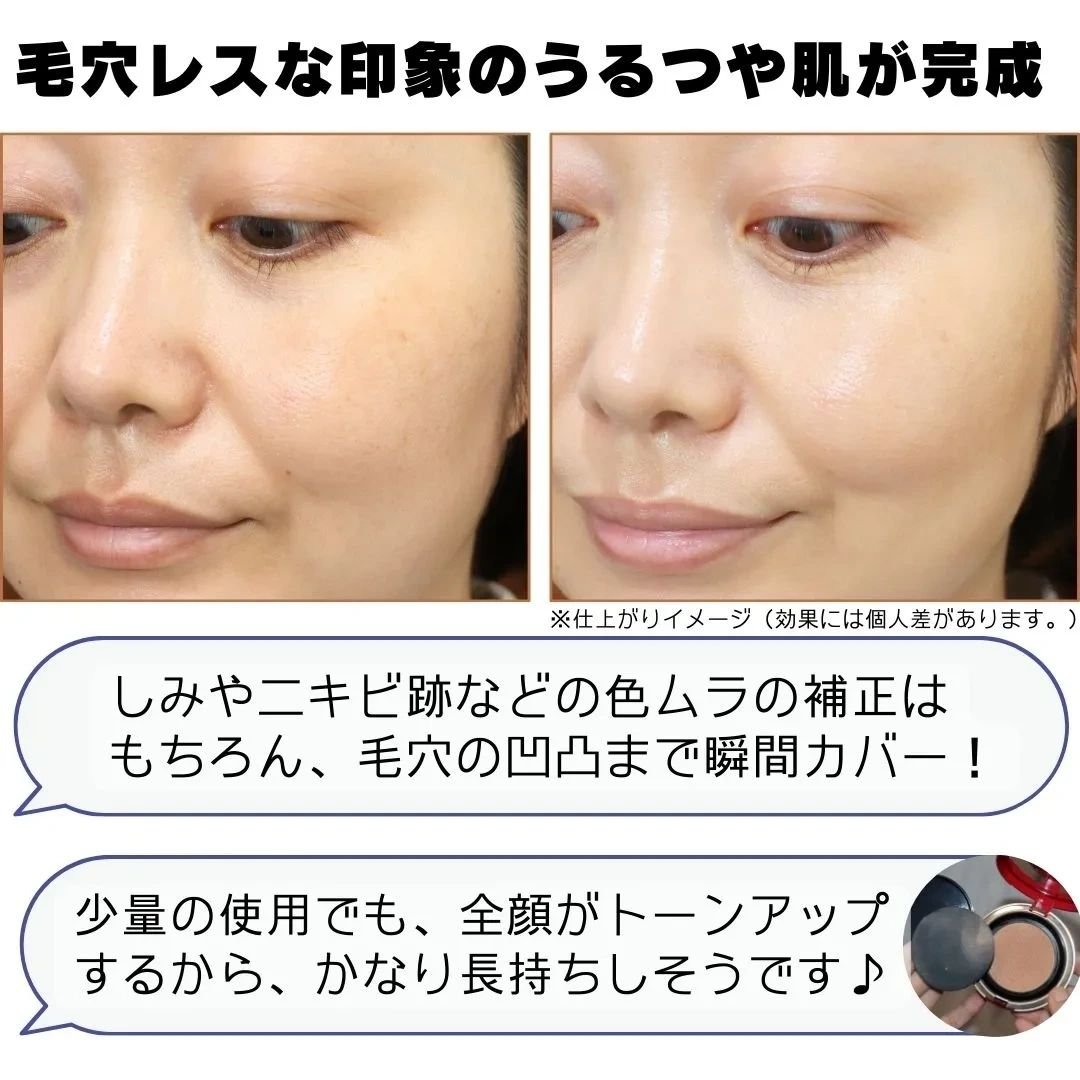 - 1回ポンとするだけで、気になる毛穴・色ムラ・ニキビ跡を瞬間カバーするのに、厚塗り感なし!うるんだ つや肌が1日中※2続く、クッションファンデーション ※2 13時間化粧持ち(つや・化粧崩れのなさ・カバー力)持続データ取得済み(当社調べ、効果には個人差があります。) ○まるでプロが仕上げたように、光の効果で、厚塗りにならずにカバーを叶えます。 -プロフィニッシュ処方 ○肌そのものがうるおったような、みずみずしいつやが長時間持続します。 -ピュアグロウキープ技術搭載 ○ヒアルロン酸(保水)配合 ○乾燥を防いで、うるおいが長時間持続します。 ○肌に負担をかけないやわらかな使い心地です。 -肌あれ防止ミネラルパウダー配合 ○SPF50+・PA+++ ○無香料・ニキビのもとになりにくい処方・アレルギーテスト済み ※全てのかたにニキビができない・アレルギーが起きないというわけではありません。 ■仕上がりイメージ 1回ポンとするだけで瞬間カバー。 ※仕上がりイメージ(効果には個人差があります) <使用法> ●クッション面に専用パフを数回押しあてて適量をとります ●ほおの高い部分から外側に向かって、やさしくポンポンとなじませます。さらにカバーしたい場合は、もう一度パフに少量をとり、ポンポンと重ねづけします 2024年3月21日(木)先行発売・2024年5月21日(火)全国発売