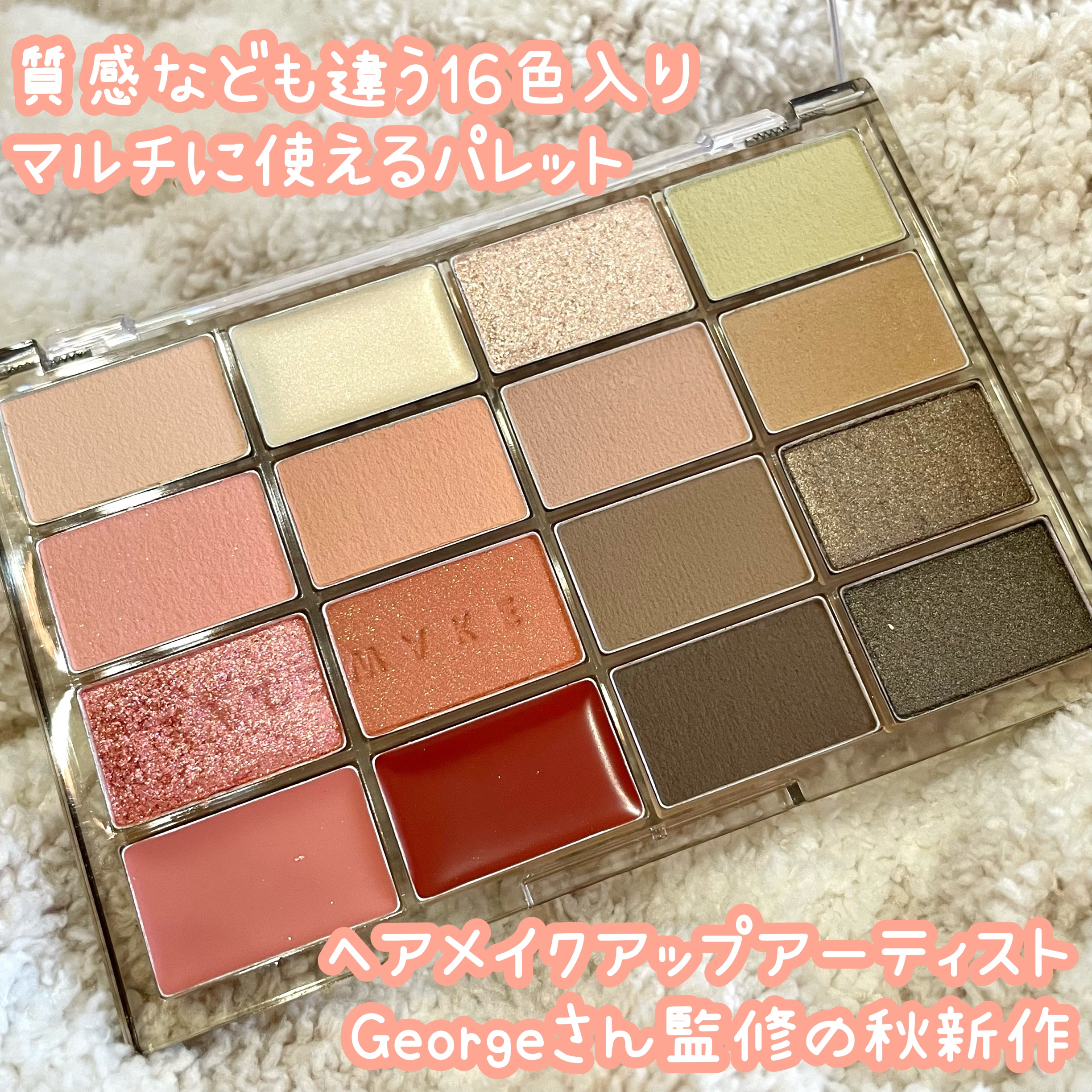 大人気ヘアメイクアップアーティスト ジョージ様監修! WAKEMAKE 22メロウオータムブラーリング 全16色パレットで多彩なテクスチャーが楽しめる◎ ①マット アイベース、涙袋ハイライト この配色の良さ テクスチャーの種類の多さ 流石ジョージ様❤️ 粉飛びせず、しっかり肌に密着してくれる粉質の良さはバッチリ◎