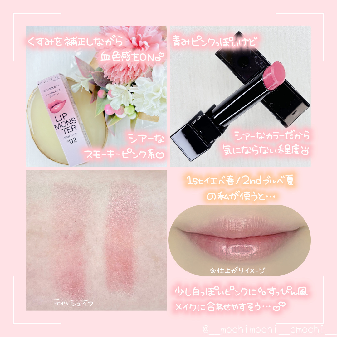 ◯KATEリップモンスタークリアトーンC02 肉色モンスターシアーなスモーキーピンク系💕『発色を抑えたなじみ発色カラーが唇の色と同化。長時間色持続で、落ちにくい。』♡全3色♡保湿(←個人的にはめちゃくちゃ保湿されてる感じというより、リプモンと...