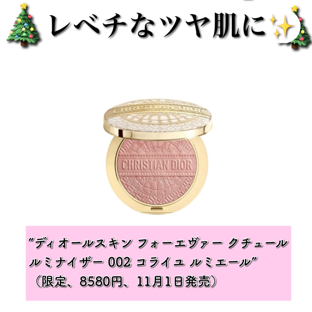 2024年のクリスマスコフレ🌲🎁 上段の、左右2色は、チークとハイライター。ほんわり、薄めで柔らかい発色。 上段の、真ん中はアイシャドウ5色。濃いめな発色だけど、万能ブラウン。 見た目がジュエリーケースみたいであがる❤️ 限定だけど、まだ売ってるところあるみたいなので、気になってる方は是非✨