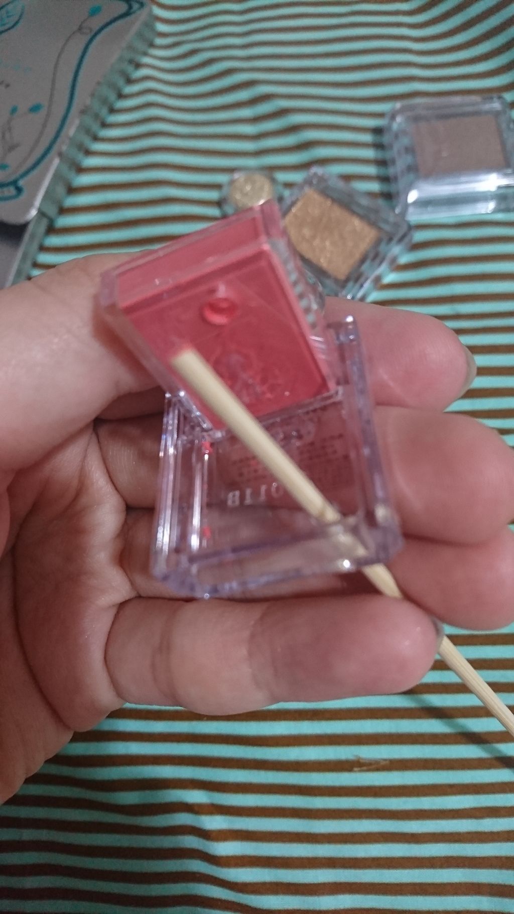 画像のチョイスと順番が逆ですみません。 注意事項の記載を忘れていましたのでこちらで補足させてください。 ケースからアイシャドウ本体を外すときに、爪楊枝を穴にさしますが、そのとき本体の穴とケースの穴の位置が同じでアイシャドウを貫通してしまう場合があります。爪楊枝から針に替えて穴の縁ギリギリを突くようにしてください。