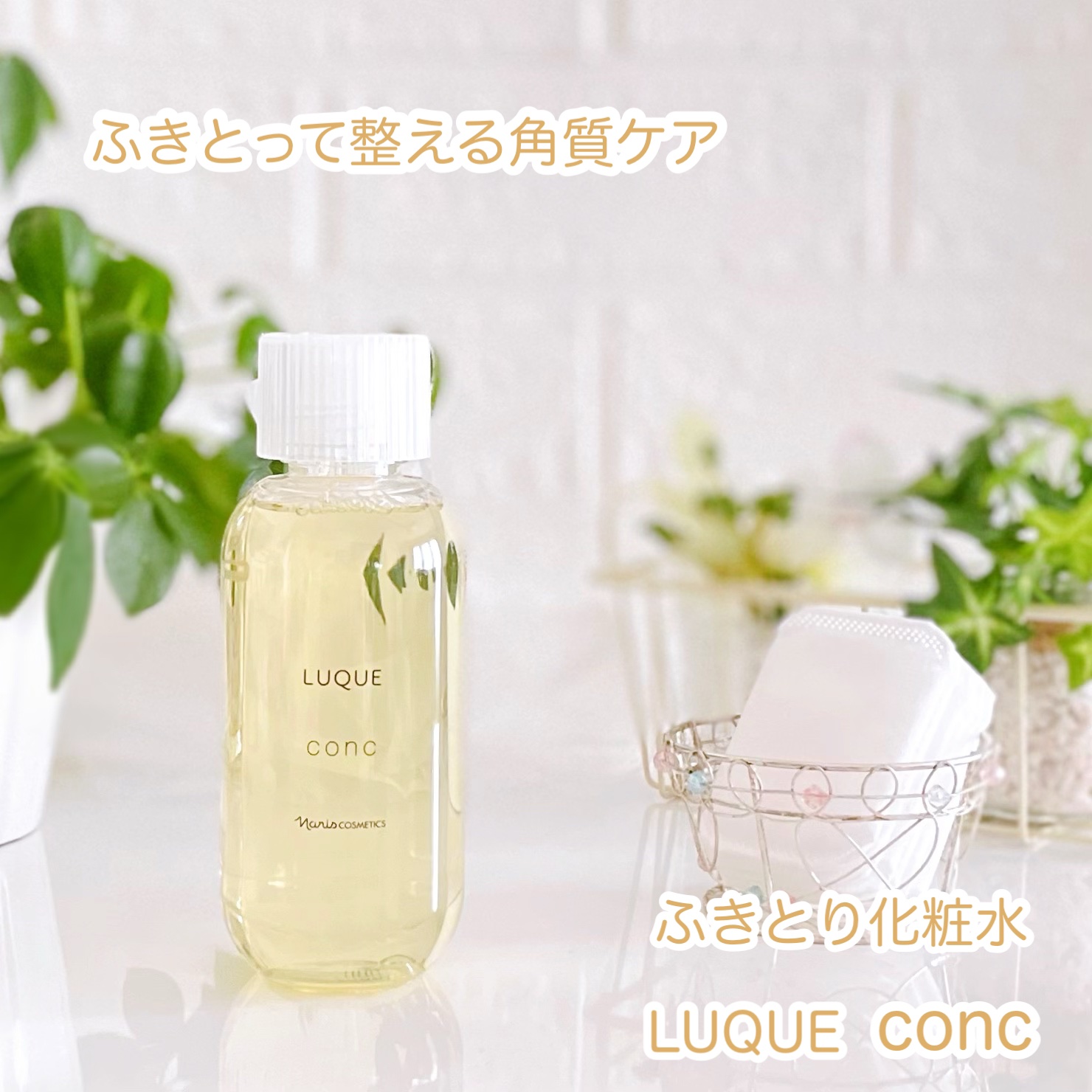 - ■毛穴、ザラつき、くすみ※1が気になる方に、不要な角質をふきとって、つるんとなめからかな肌へ。 ナリスのふきとり化粧水は、5年連続国内売上シェアNO.1※2 肌にとって余分な老化角質をおだやかに取り除き、素肌が持つ本来の美しさを引き出すルクエのコンク(ふきとり用化粧水)はナリスの80年以上続く研究開発によって誕生しました。 ●キレイのこたえは、ふきとり化粧水という選択。 植物保湿成分で古い角質をやさしくオフして、次に使うスキンケアアイテムのなじみをサポート。日々変化する肌をすこやかに整えます。毎日の“ふきとり習慣”で理想の肌に近づきましょう。 ●厳選した3つの植物の力で角層ケアをサポート。 ・柔らかくほぐして、取り除きやすくする「ヨクイニンエキス」※3 ・潤いを与え、健康的な角層へ導く「月見草エキス」※4 ・潤いを逃さず閉じ込める「白花豆エキス」※5 【使用方法】 1. 朝晩2回、洗顔後の後に。 2. コットンに8〜10滴程度(500円玉大)を含ませます。目安は、コットン裏側に染み込む程度。 3. できるだけ力を入れずに、やさしくなでるように顔全体を拭き取ります。 ※1古い角質による ※2ナリス化粧品 2015~2019年度 「ふきとり用化粧水」販売動向調査 TPCマーケティングリサーチ株式会社調べ※3 ハトムギ種子エキス(保湿成分) ※4 メマツヨイグサ種子エキス(保湿成分) ※5ベニバナインゲン種子エキス(保湿成分)