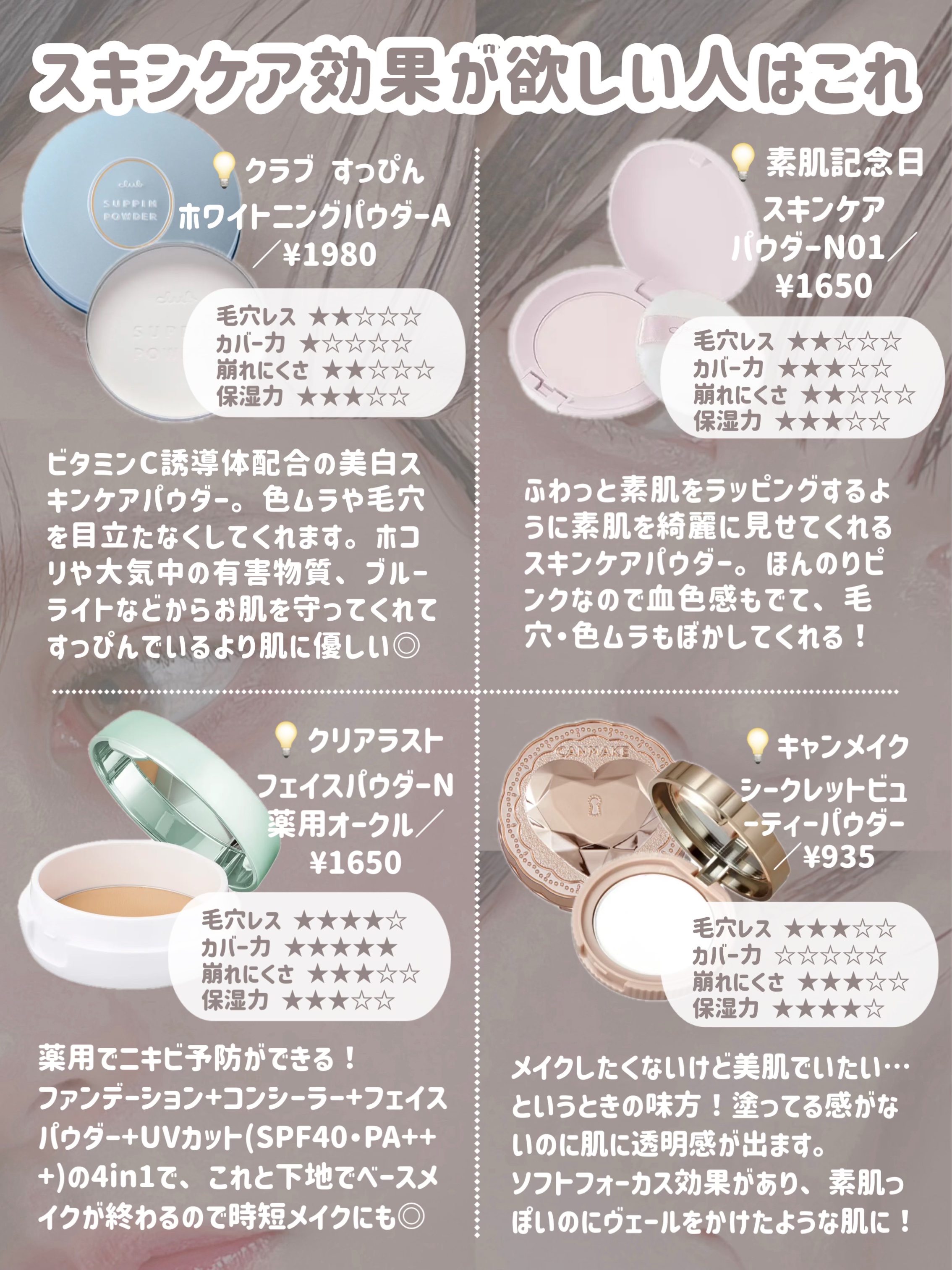 | フェイスパウダーランキング第105位 | メイクしながらニキビ予防できる オススメベースメイク❤︎ | 詳細を見る | |