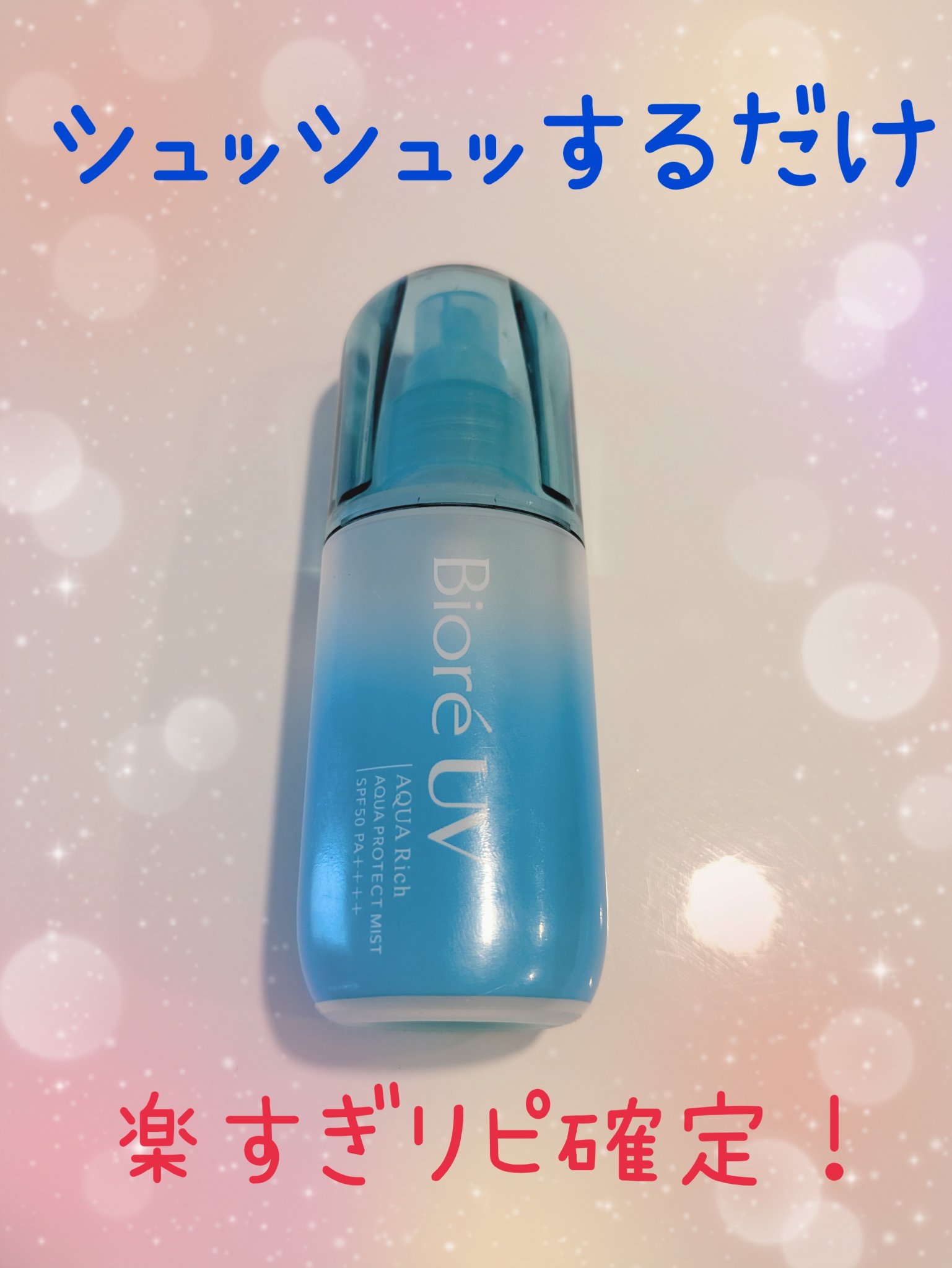少し前にKaoさまの、Kaoコレモ!のキャンペーンでいただきました。ビオレビオレUVアクアリッチアクアプロテクトミスト顔、からだ、髪に使えます。霧のような細かいミストでした。体に使う場合は10~15cm離してまんべんなくかけます。顔に使う場合...