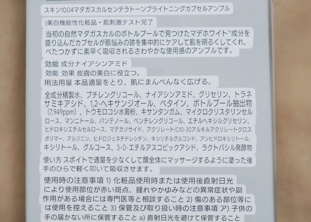 マダガスカル産CICA成分をふんだんに配合していて、外部環境により刺激を受けた肌を素早く鎮静させ、MADE WHITE™︎が肌をやさしく引き締めながら、ツヤ肌も叶えてくれる✨ とろみのあるテスクチャーで香りもなくて、カプセルは馴染ませると溶けます😊 ベタつかず、しっとりとした使用感でした😊 潤いもあってブライトニング効果も期待できそうなので、引き続き使い続けていこうとおもいます💓