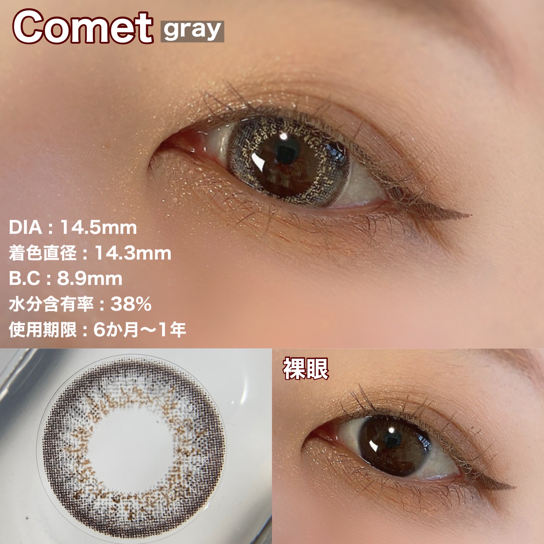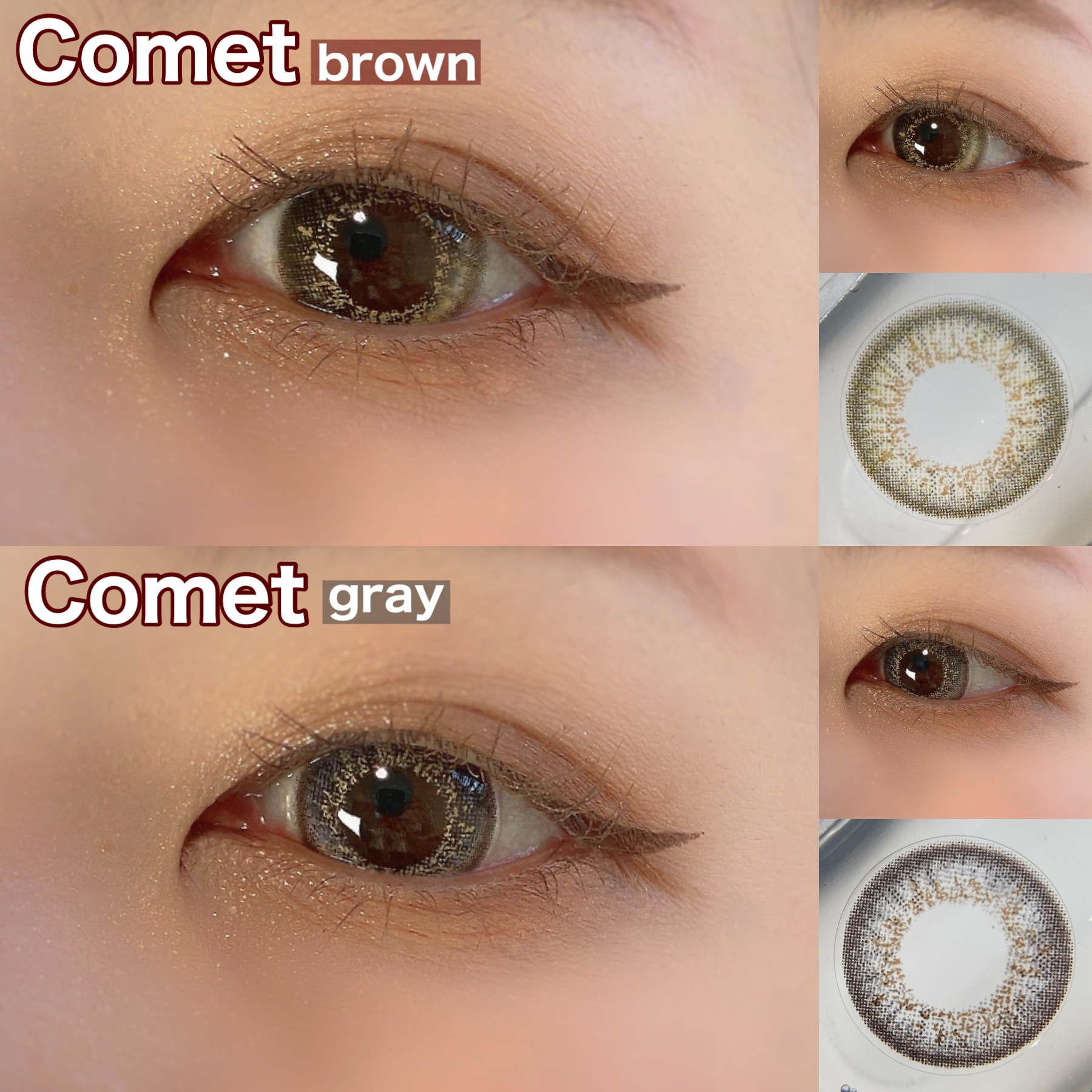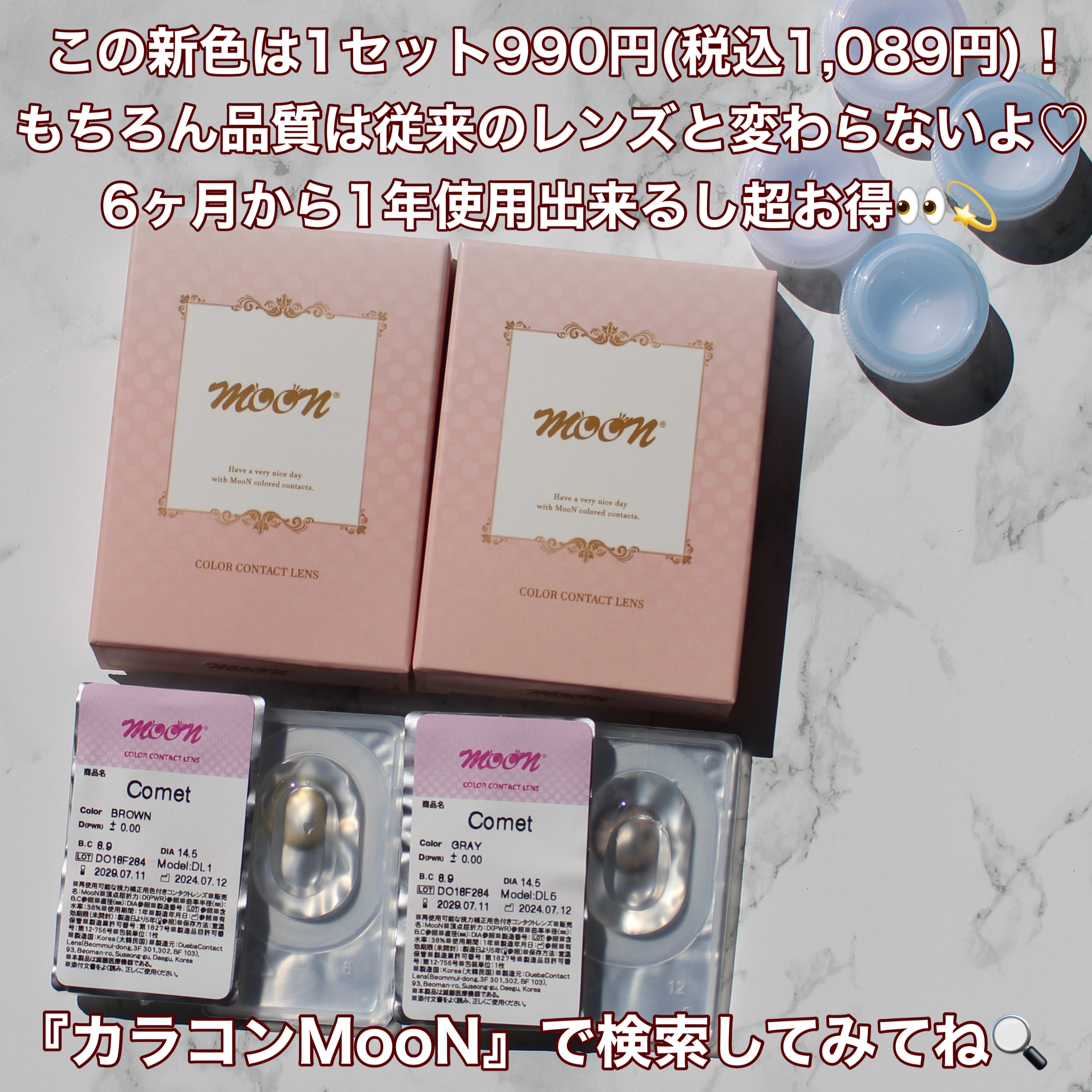 派手目な発色とデザイン。色味はブラウンとグレーだよ。着色直径14.4mmで大きくてこれぞmoonのカラコンとファンになる人も多そう♡ moonのカラコンは他にもハーフ系が充実していておすすめです!ぜひ @moon.official_com でチェックしてみてください。 プチMooNシリーズ 新登場!ギャルカラコンなCometをつけてみた✨