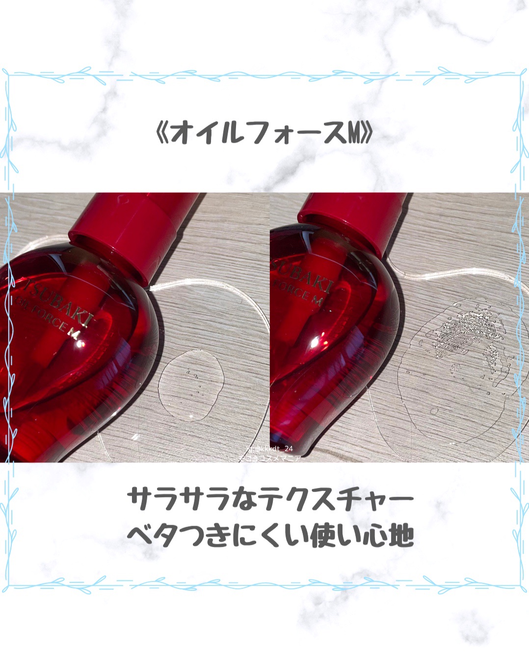 芳醇な甘さのある香りを吸い込むとこれこれー!ってなる💭 ハリ・コシのなさが気になる髪に。TSUBAKIっぽい、うるっとしたしなやかな髪も目指せるのが好きなところ。 髪のパサつきが気になる時はオイルフォースMも合わせて使うのが◎